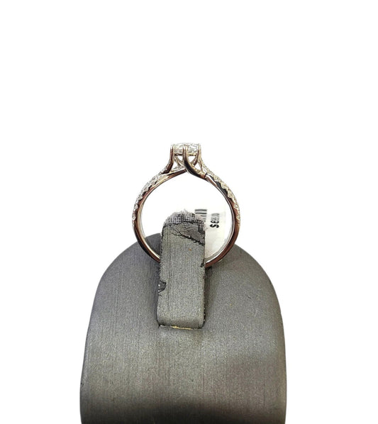 14k White Gold Round Pave Ring LAB Created Diamonds Wedding Ladies Band Women