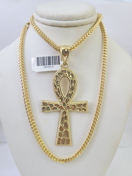 10k Gold Solid Miami Cuban Chain Necklace Jesus Head Pendant 2.5mm 18-24" Set