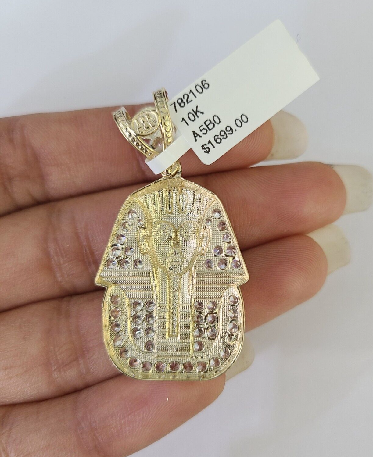 We present You with This Absolutely Stunning Real 10k Yellow Gold Egyptian Pharaoh Head Charm Pendant. It has a detailed cut with a very good finish. This Beautiful Pendant will not tarnish, discolor, or fade because it is Pure 10K Gold. Please feel free to contact us if you have any queries regarding the item. A5B0