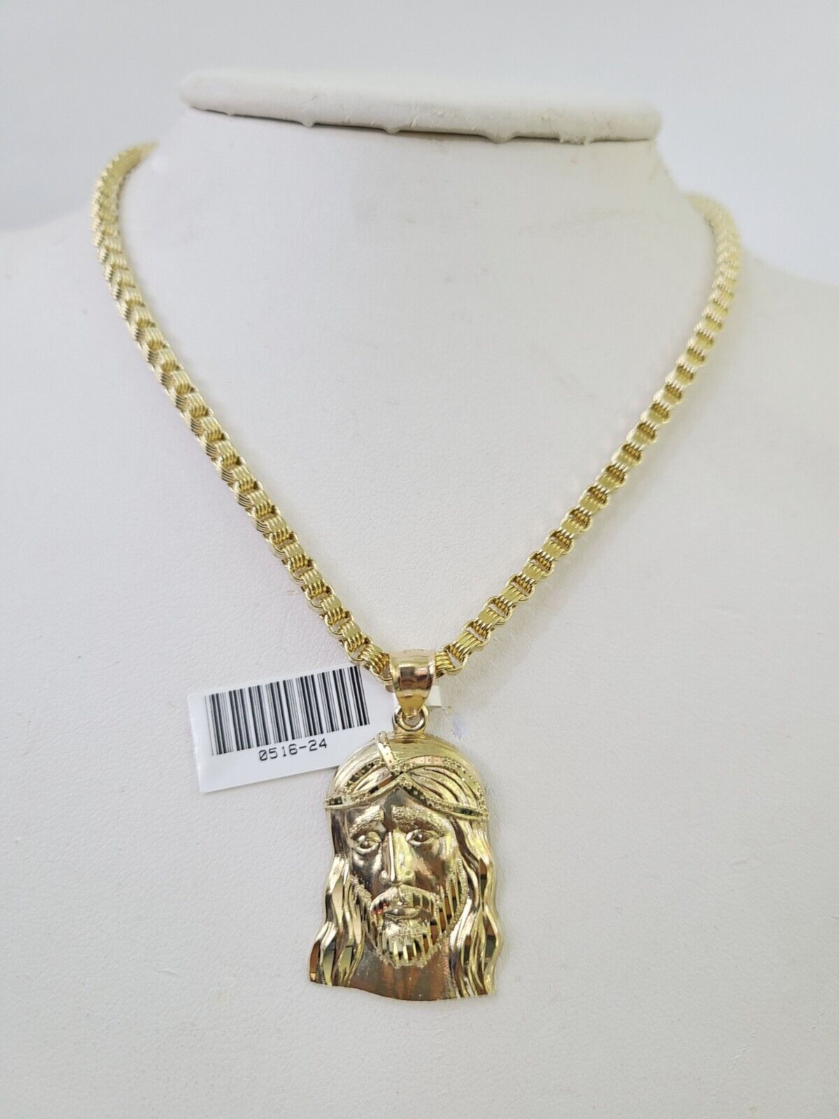 We present You with This Absolutely Stunning Real 10k Yellow Gold Byzantine Chain with Jesus Head Pendant. It has a detailed cut with a very good finish. These Beautiful Chain and Pendant will not tarnish, discolor, or fade because they are Pure 10K Gold. Please feel free to contact us if you have any queries regarding the item. 24''-A9B7 A2B9