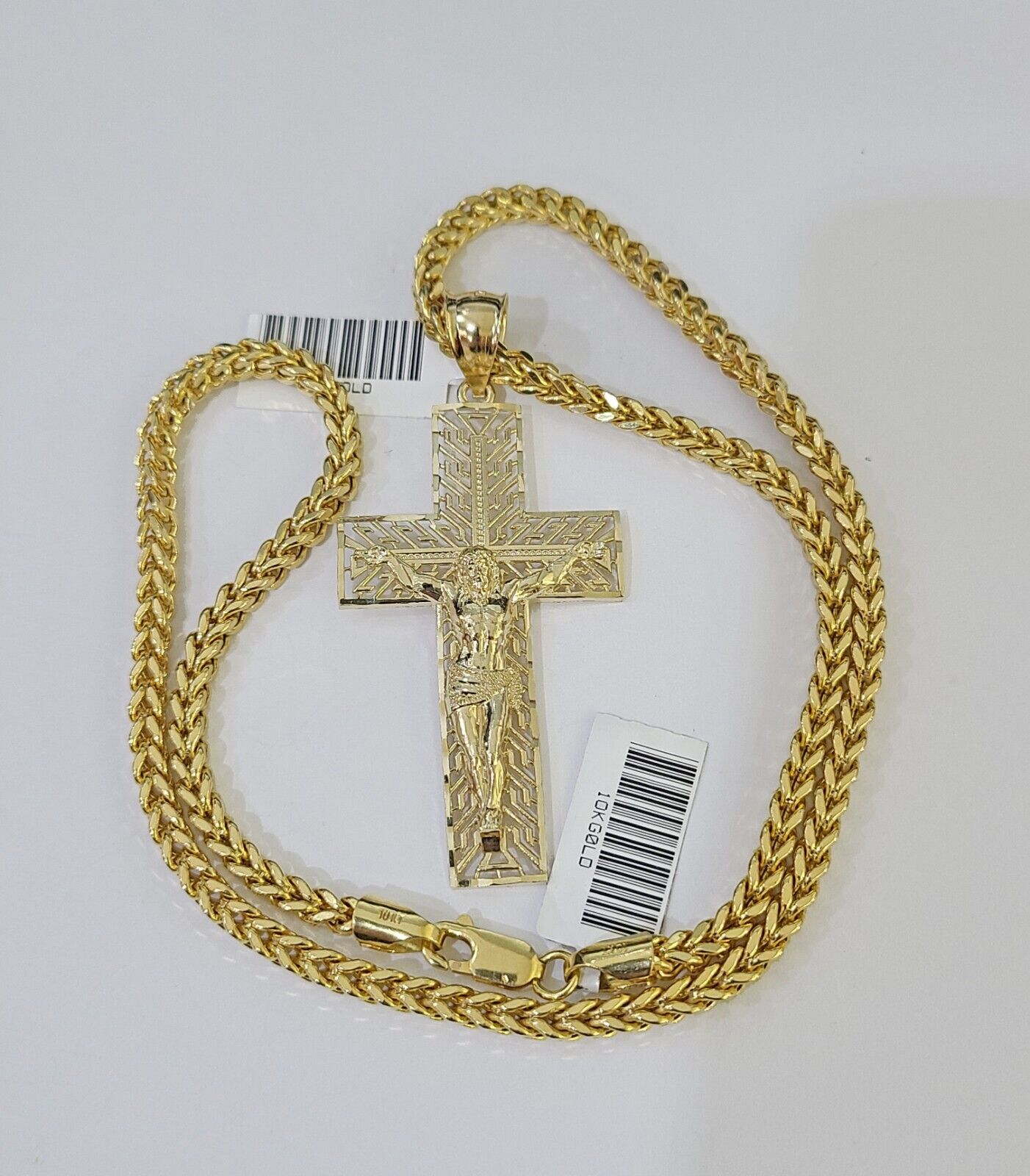 Is Presenting You with This Absolutely Stunning Real 10k Yellow Gold Franco Chain 3mm, 18-26 Inches with Cross Charm, Lobster Lock. The links are 10K GOLD and are very strong. 18"A11B0 A3B9