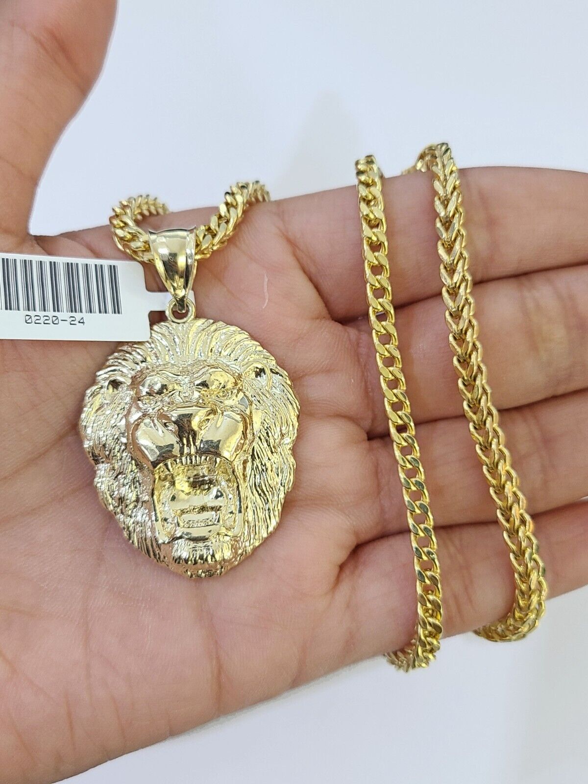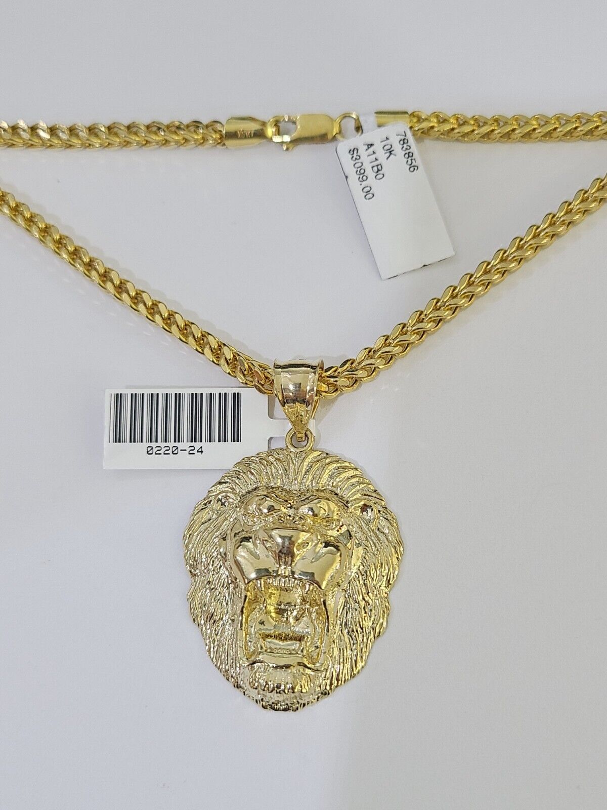 Is Presenting You with This Absolutely Stunning Real 10k Yellow Gold Franco Chain 3mm, 18-26 Inches with Lion Charm, Lobster Lock. The links are 10K GOLD and are very strong. 18"A11B0 A5B0