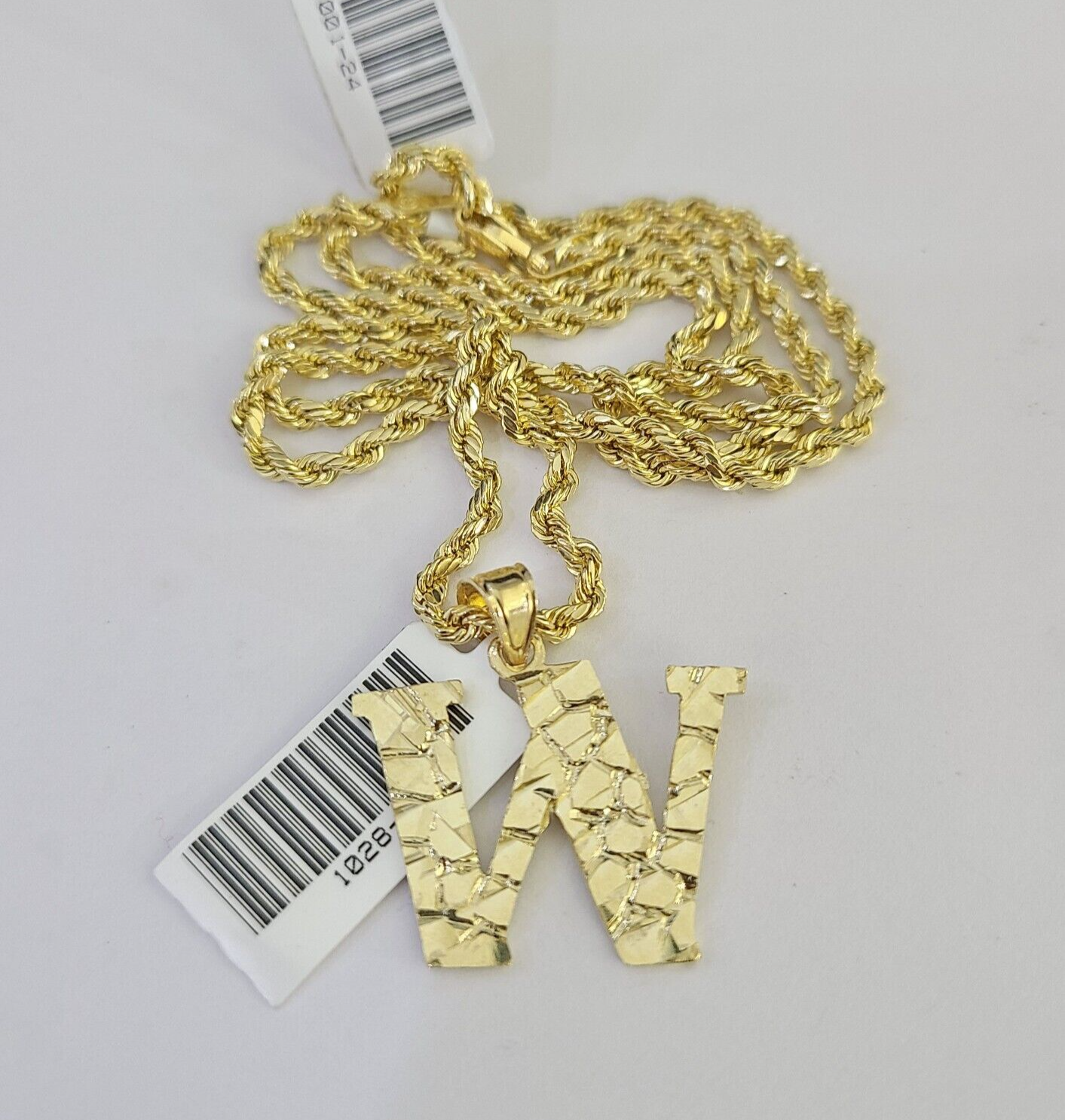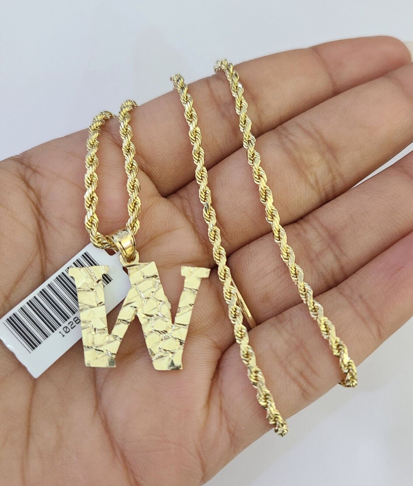 Is Presenting You with This Absolutely Stunning Real 10k Yellow Gold Rope Chain 2.5mm, 16-26 Inches Lobster Lock with W Initial/Letter/Alphabet. The links are 10K GOLD and are very strong. 18"-A3B1 A2B1 P4604