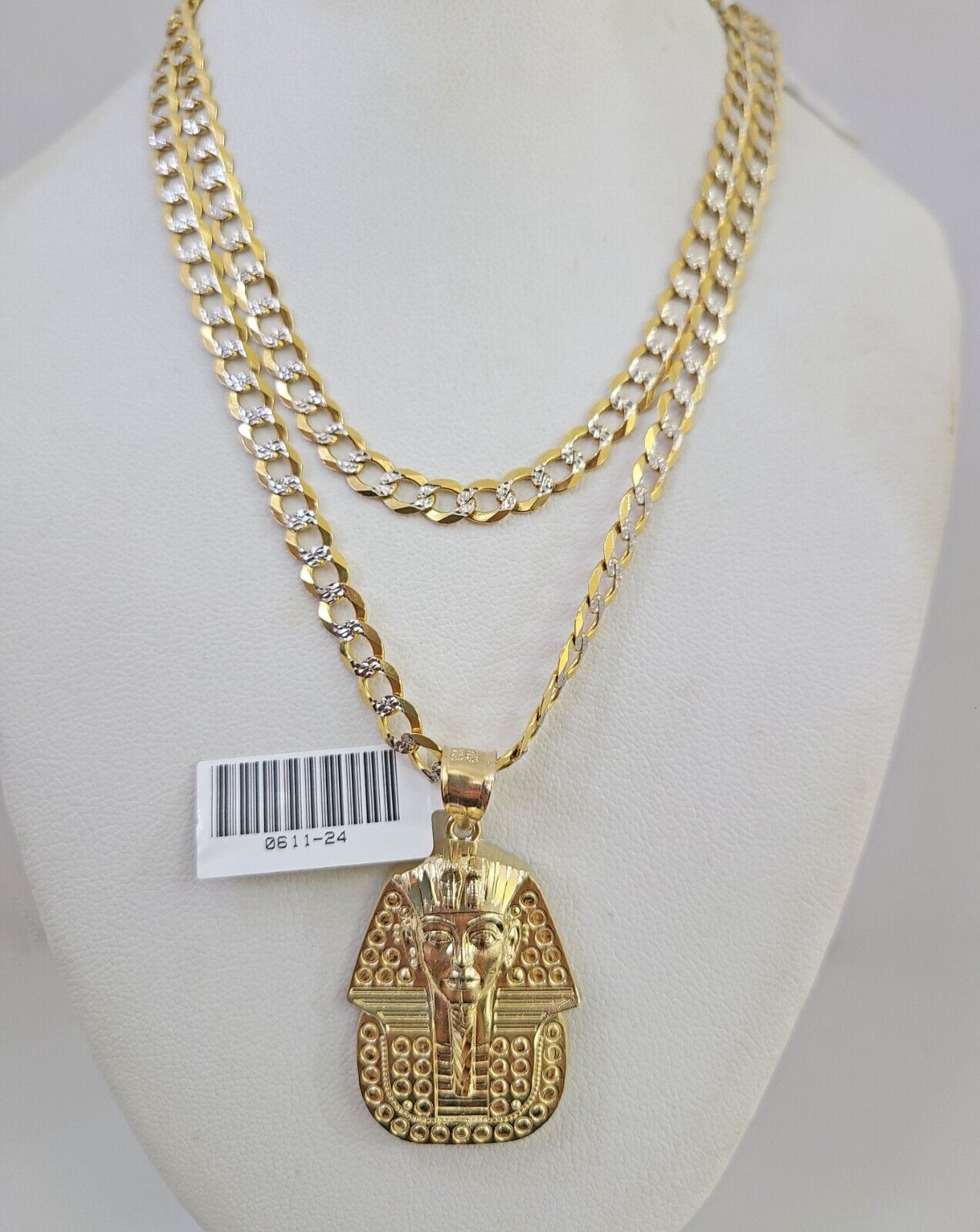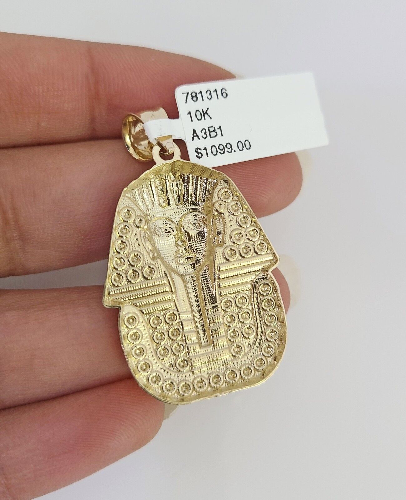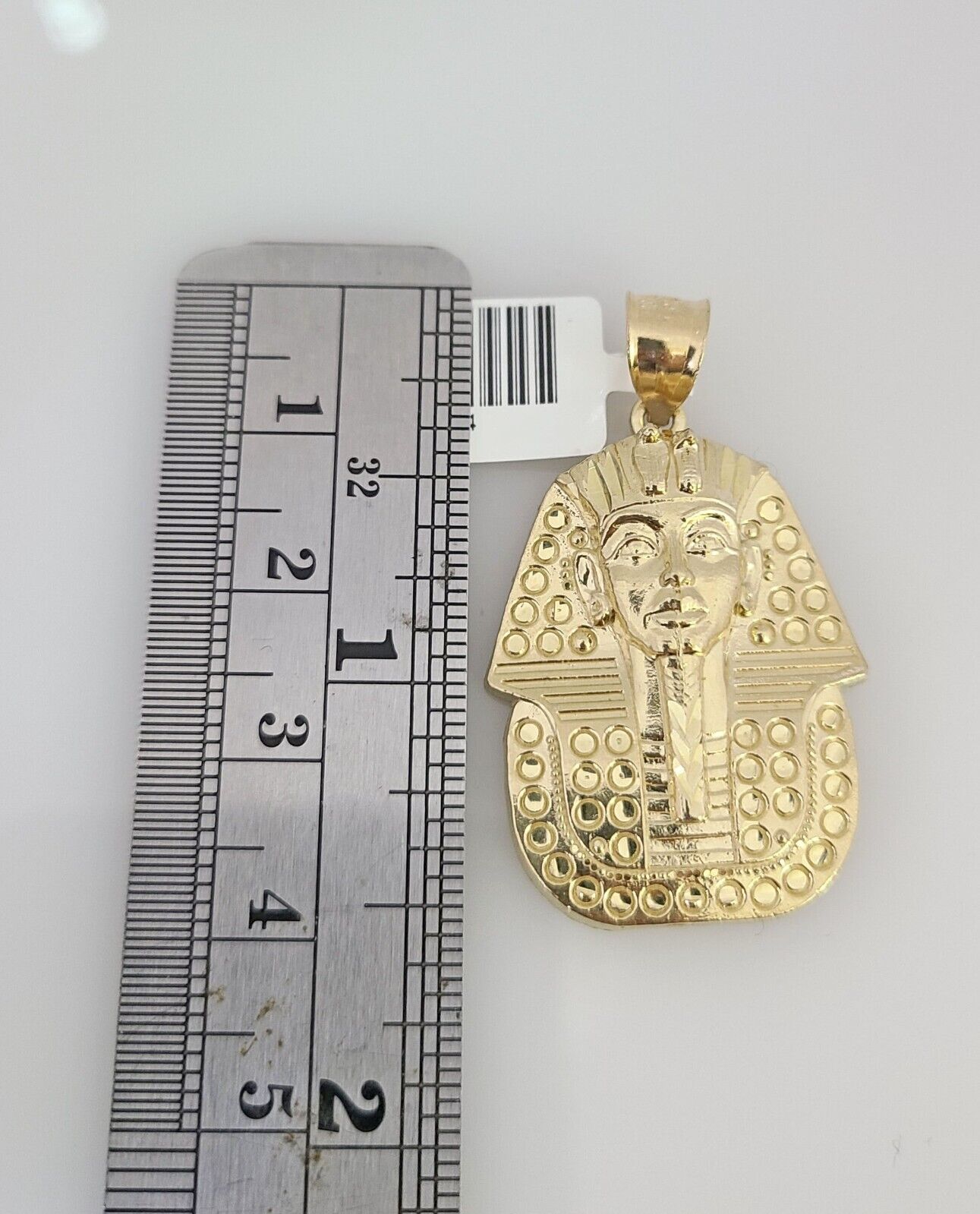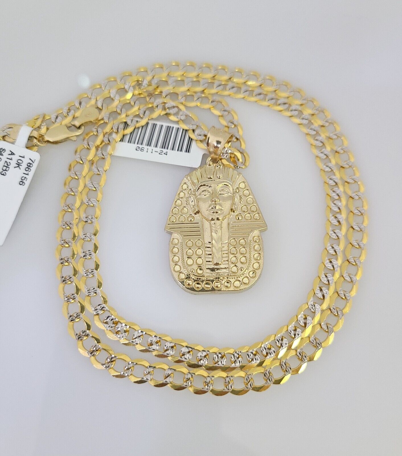 We present You with This Absolutely Stunning Real 10k Yellow Gold SOLID Cuban Curb link Chain Diamond Cut with Pharaoh Charm. It has a detailed cut with a very good finish. These Beautiful Chains will not tarnish, discolor, or fade because they are Pure 10K Gold. Please feel free to contact us if you have any queries regarding the item. 24"-A12B3 A3B1 cal
