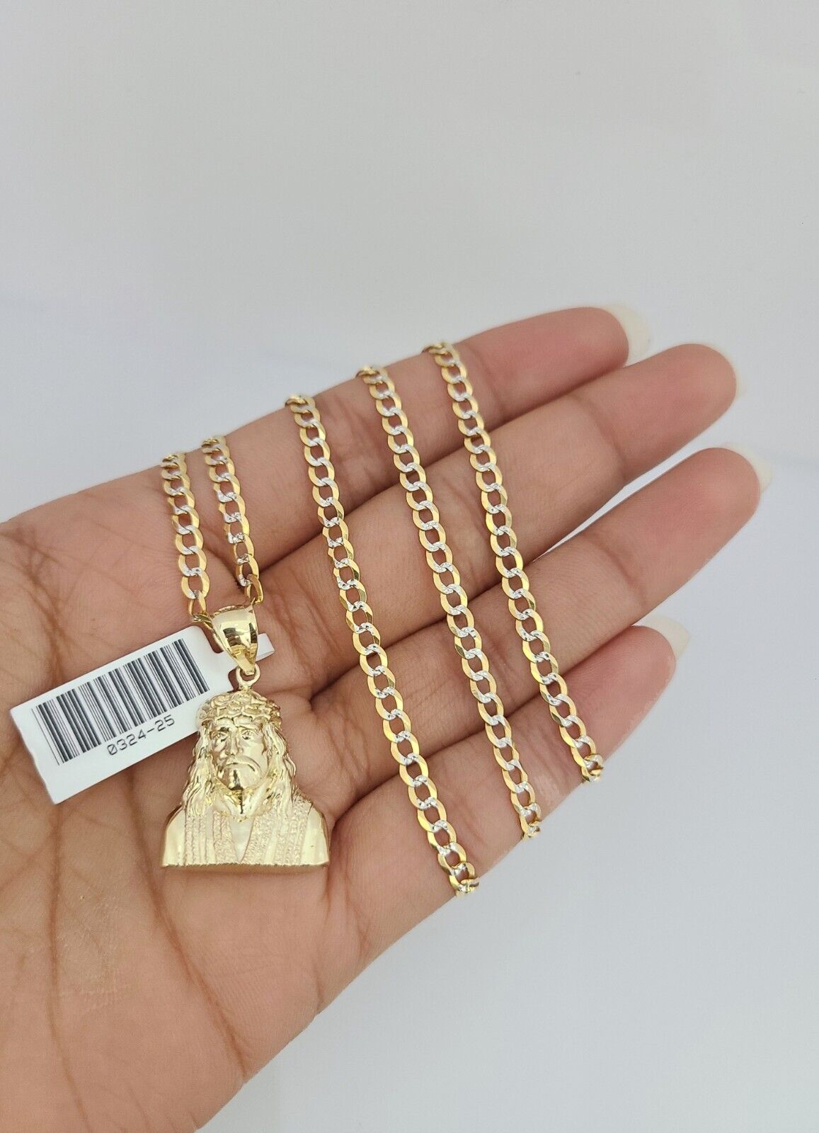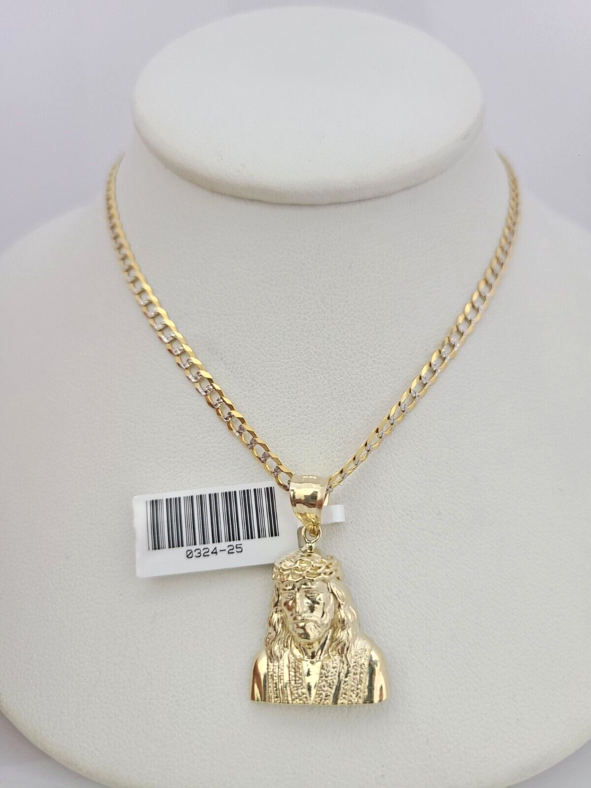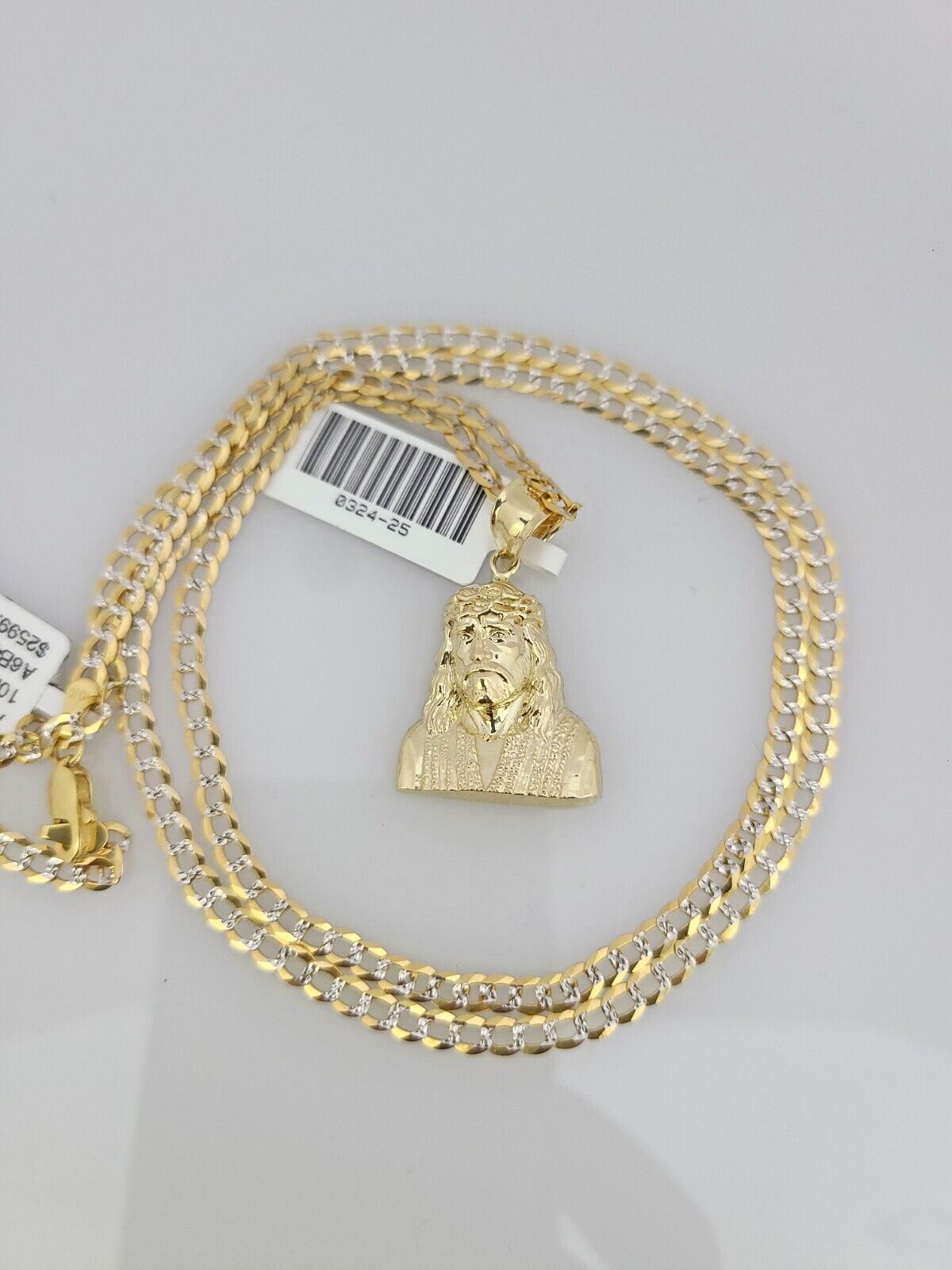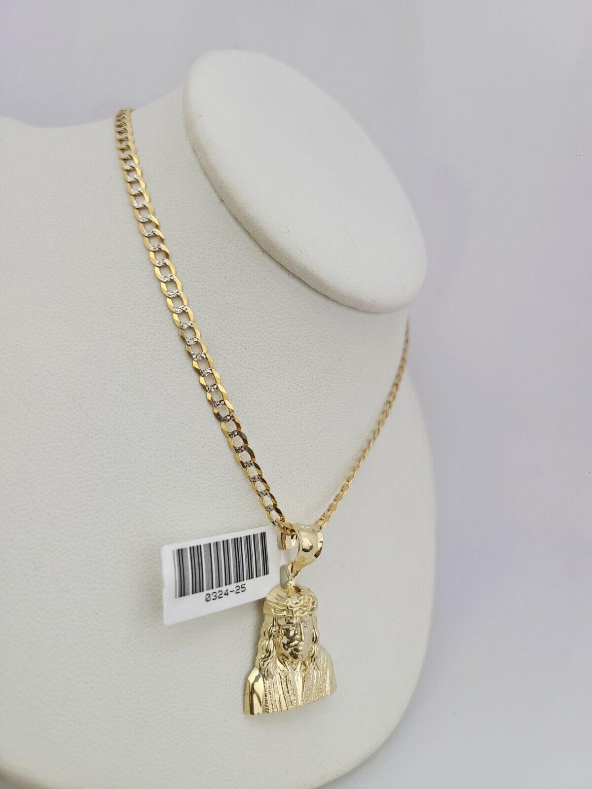 Genuine 10k Yellow Gold Solid Cuban Curb Link Chain Necklace 3mm Chain with Jesus Head Pendant. The Various lengths of the Chain are 18"-26". The Pendants are unique in design and considered durable too. If you are not happy with the way it looks or feels, we do offer 30 - Days FREE Return shipping. Contact us for more information.