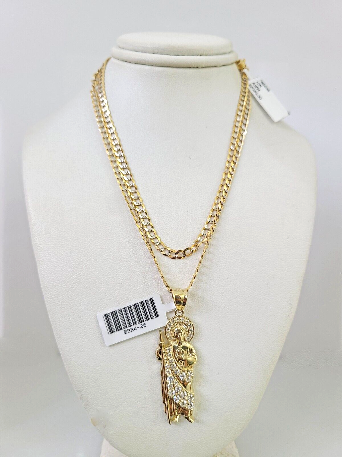 Genuine 10k Yellow Gold Solid Cuban Curb Link Chain Necklace 3mm Chain with Saint Jude Pendant. The Various lengths of the Chain are 18"-26". The Pendants are unique in design and considered durable too. If you are not happy with the way it looks or feels, we do offer 30 - Days FREE Return shipping. Contact us for more information.