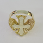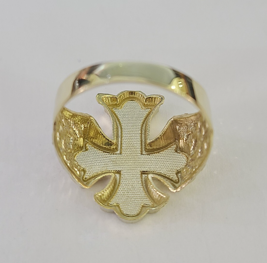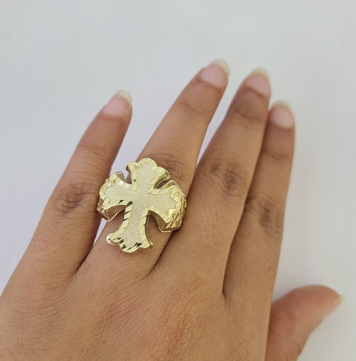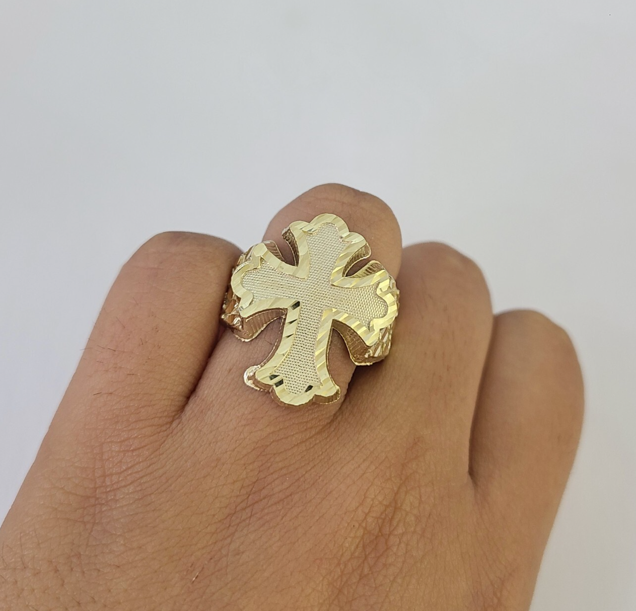 Real 10K Yellow Jesus Cross Nugget Gold Ring. The shape is Round, Traditional and Classic & Timeless. It flaunts Extra ordinary Design ring. It comes with standard size 13, and the ring is sizable. Sizing the ring will cost you extra $19.99 on your demand.