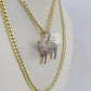 Is Presenting You with This Absolutely Stunning Real 10k Yellow Gold Miami Cuban Link Chain 4.5mm, 20 inch-28 inches, Lobster Lock with a 10k Goat Diamond Pendant. The pendant is 1-1.5 inch long (approx.). These Beautiful chains and Pendant will not tarnish, discolor, or fade because they are Pure 10K Gold. 24"-A9B0