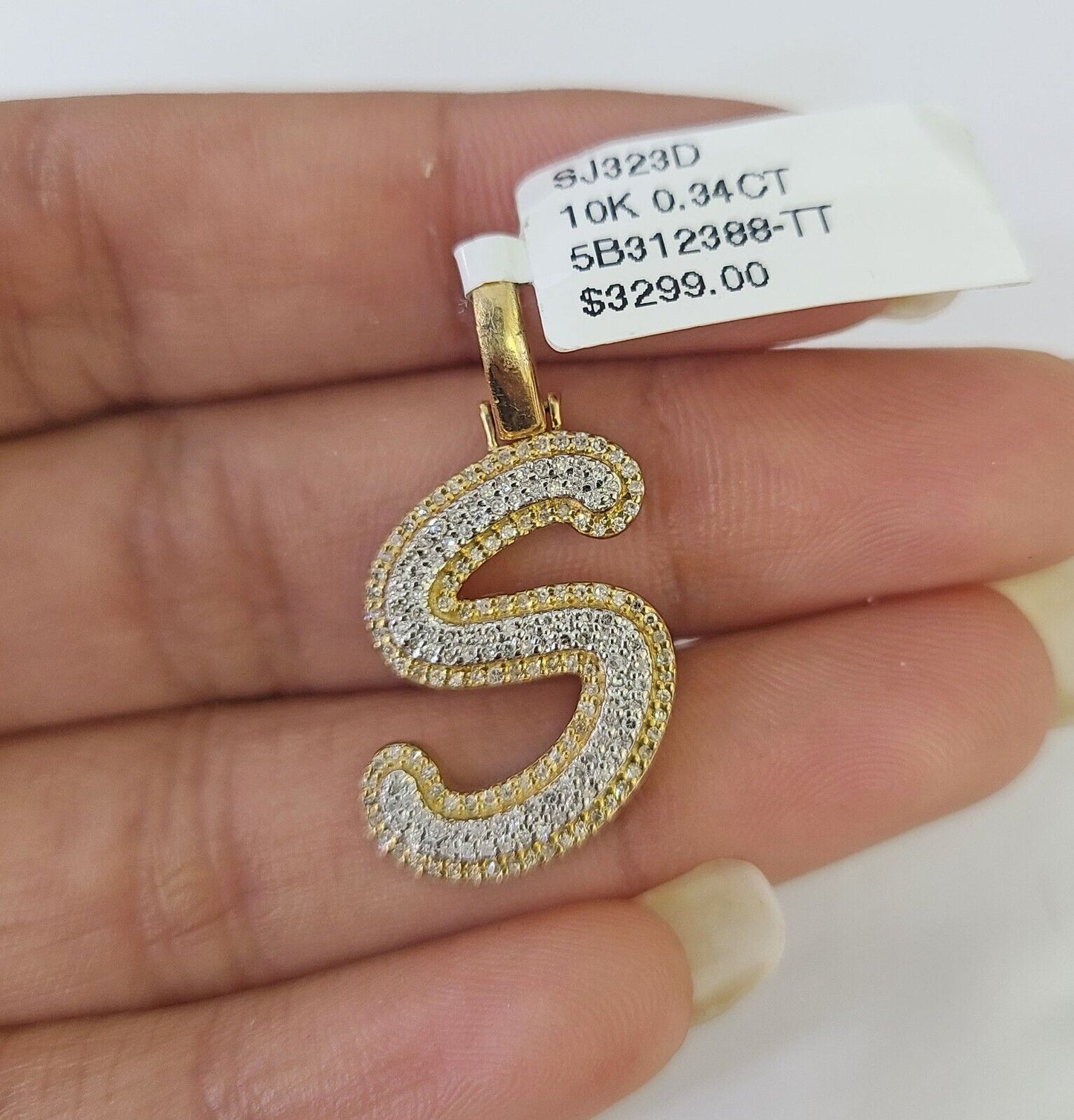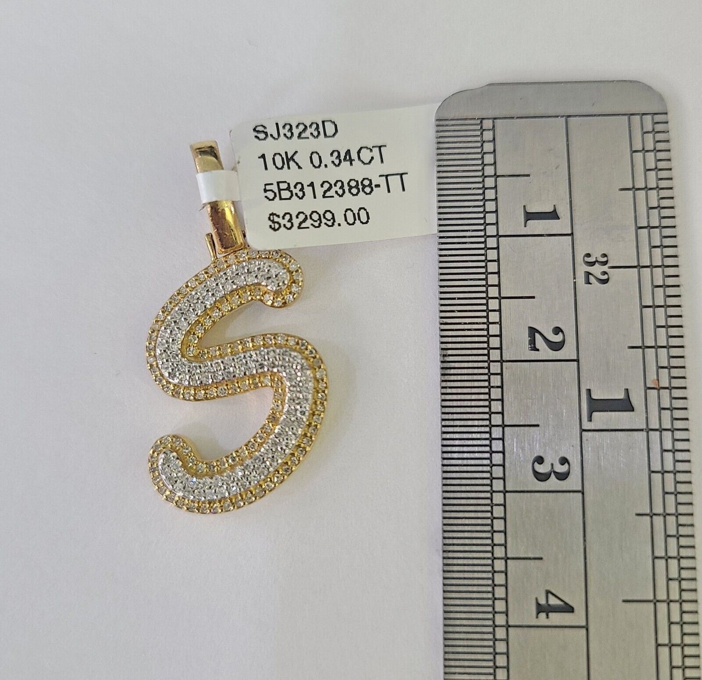 Is Presenting You with This Absolutely Stunning Real 10k Yellow Gold Miami Cuban Link Chain 4mm, 18inch- 26inches, Lobster Lock with S Alphabet/Letter/Initial Diamond Charm Pendant. These Beautiful chains and Pendant will not tarnish, discolor, or fade because they are Pure 10K Gold.