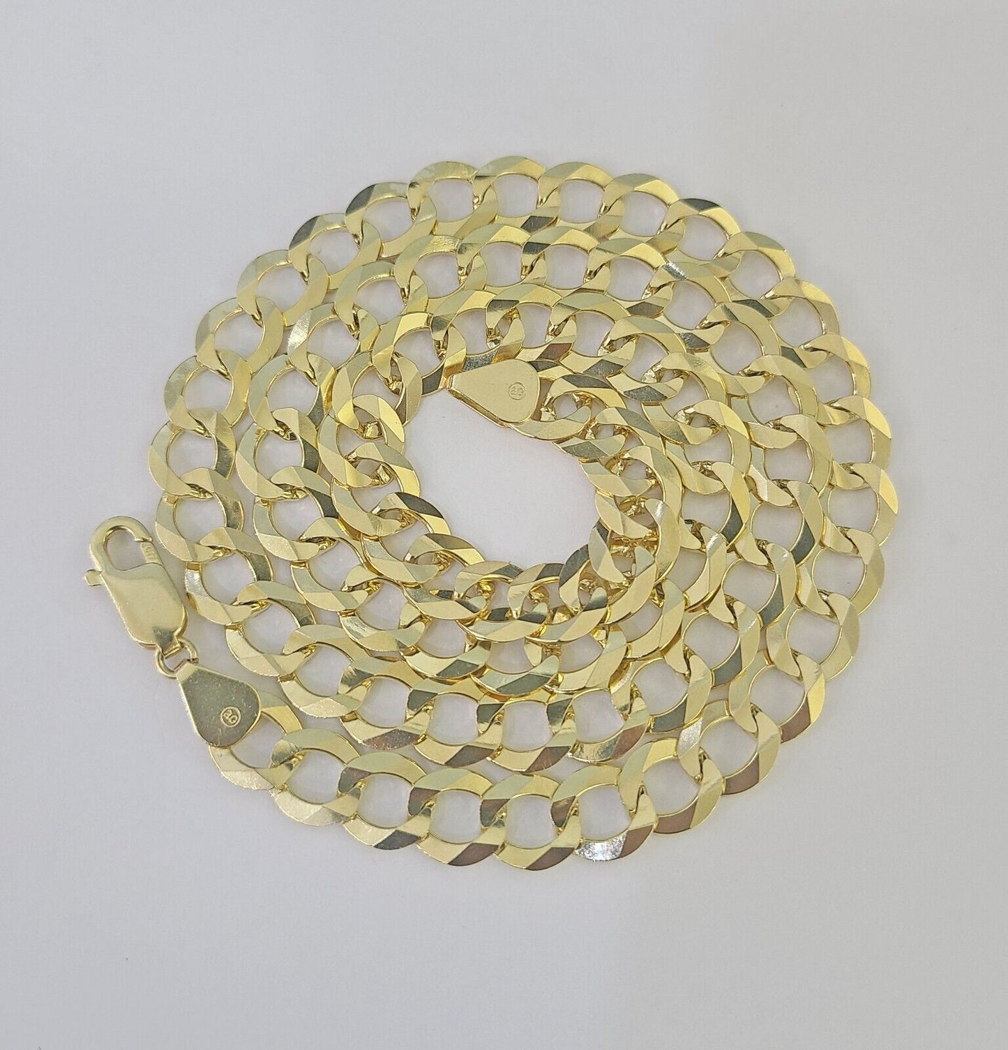 We present You with This Absolutely Stunning Real 10k Yellow Gold Cuban Curb Necklace. It has a detailed cut with a very good finish. These Beautiful Necklace will not tarnish, discolor, or fade because they are Pure 10K Gold. Please feel free to contact us if you have any queries regarding the item. 26"-A28B0 24"-A33B0 24"-A43B8