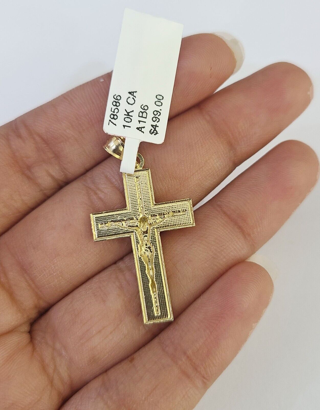Is Presenting You with This Absolutely Stunning Real 10k Yellow Gold Franco Chain 1.5mm, 18-24 Inches Lobster Lock with Jesus Cross Pendant. The links are 10K GOLD and are very strong. 22"A3B0 A1B6