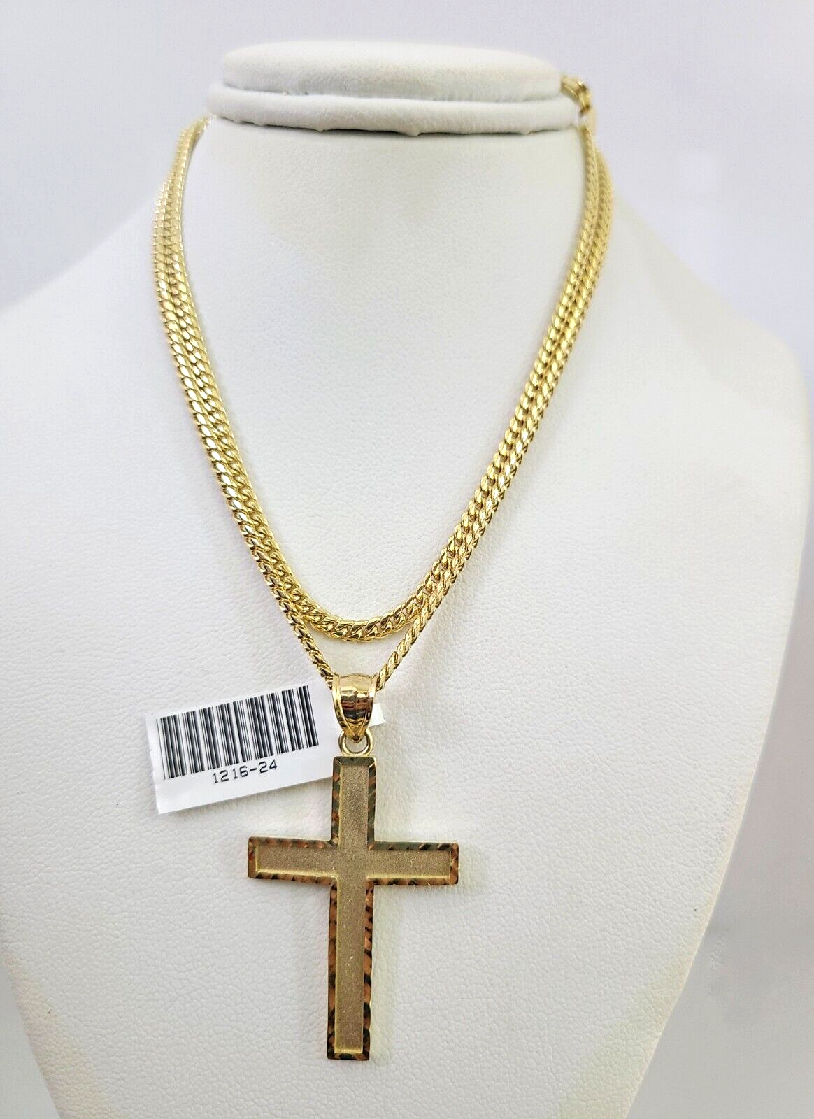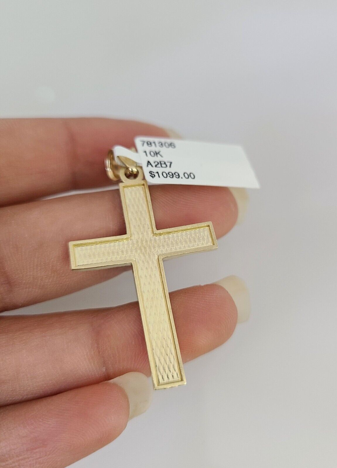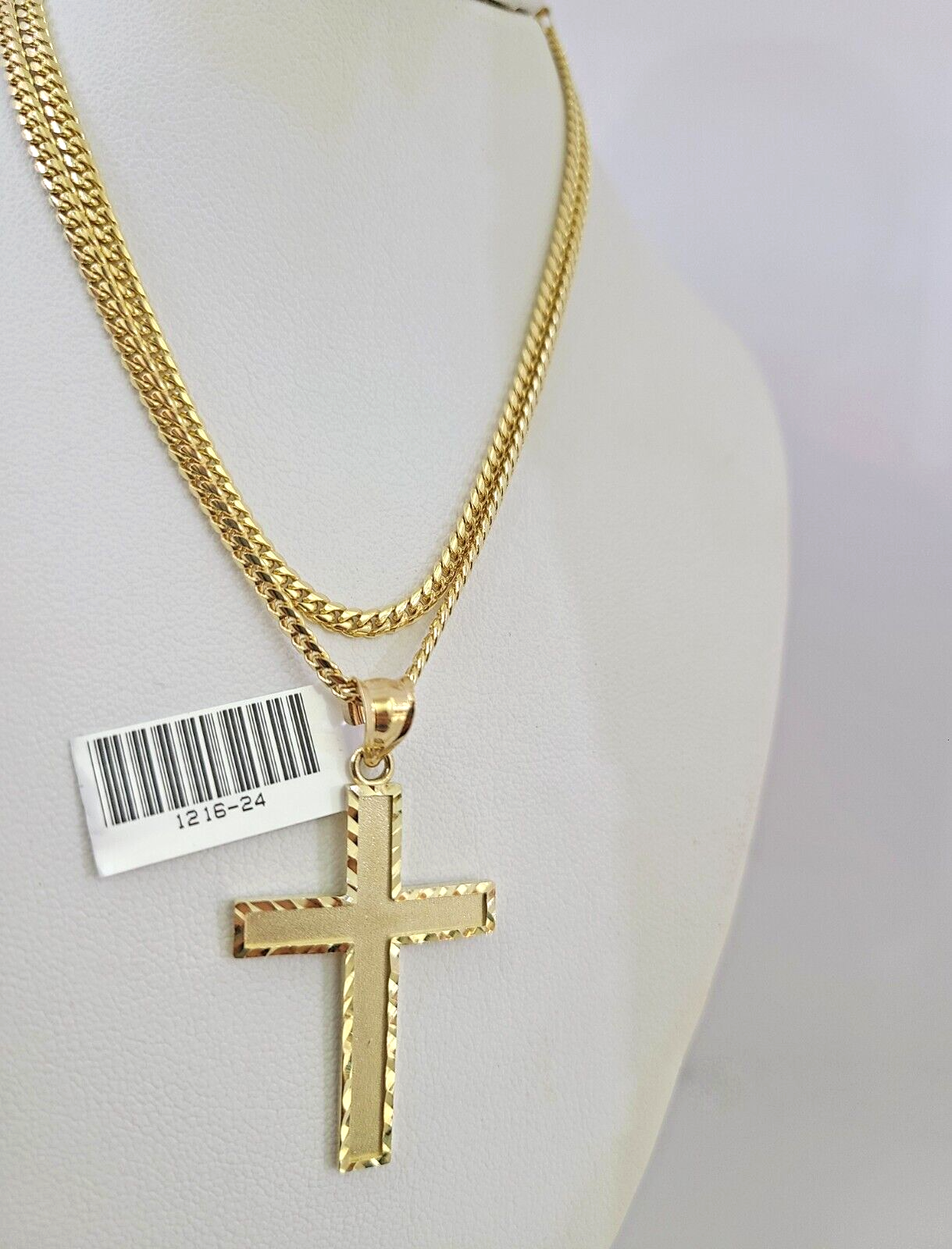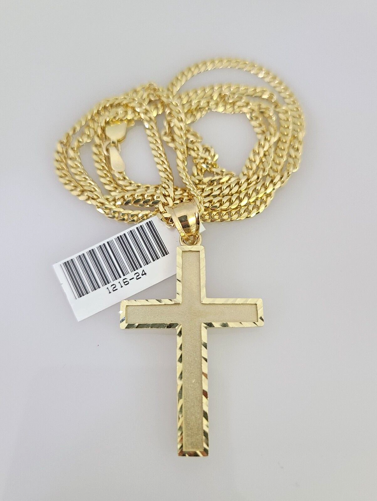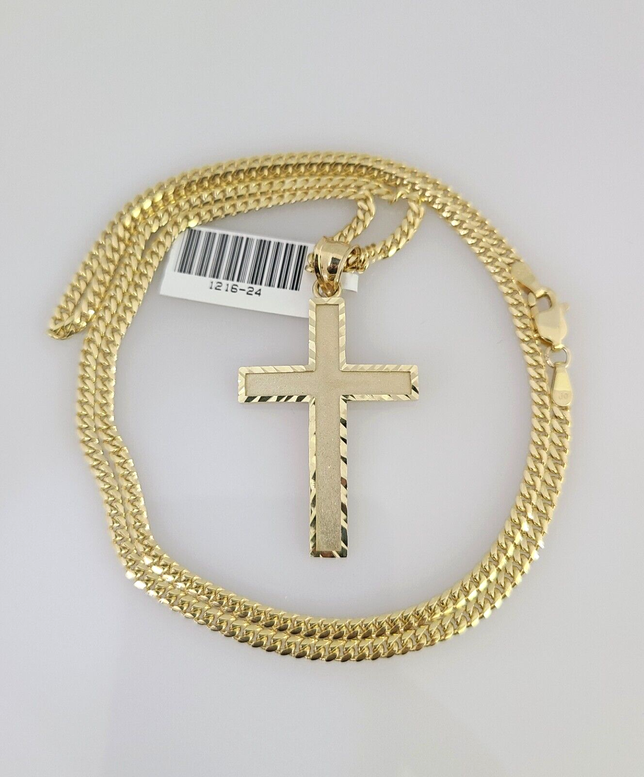Is Presenting You with This Absolutely Stunning Real 10k Yellow Gold Solid Miami Cuban Chain 2.5mm, 18-26 Inches with Jesus Cross Charm, Lobster Lock. The links are 10K GOLD and are very strong. These Beautiful Chains will not tarnish, discolor, or fade because they are Pure 10K Gold. We also have them in various another length. Please feel free to contact us if you have any queries regarding the item. 22"-A11B3 A2B7 Ask