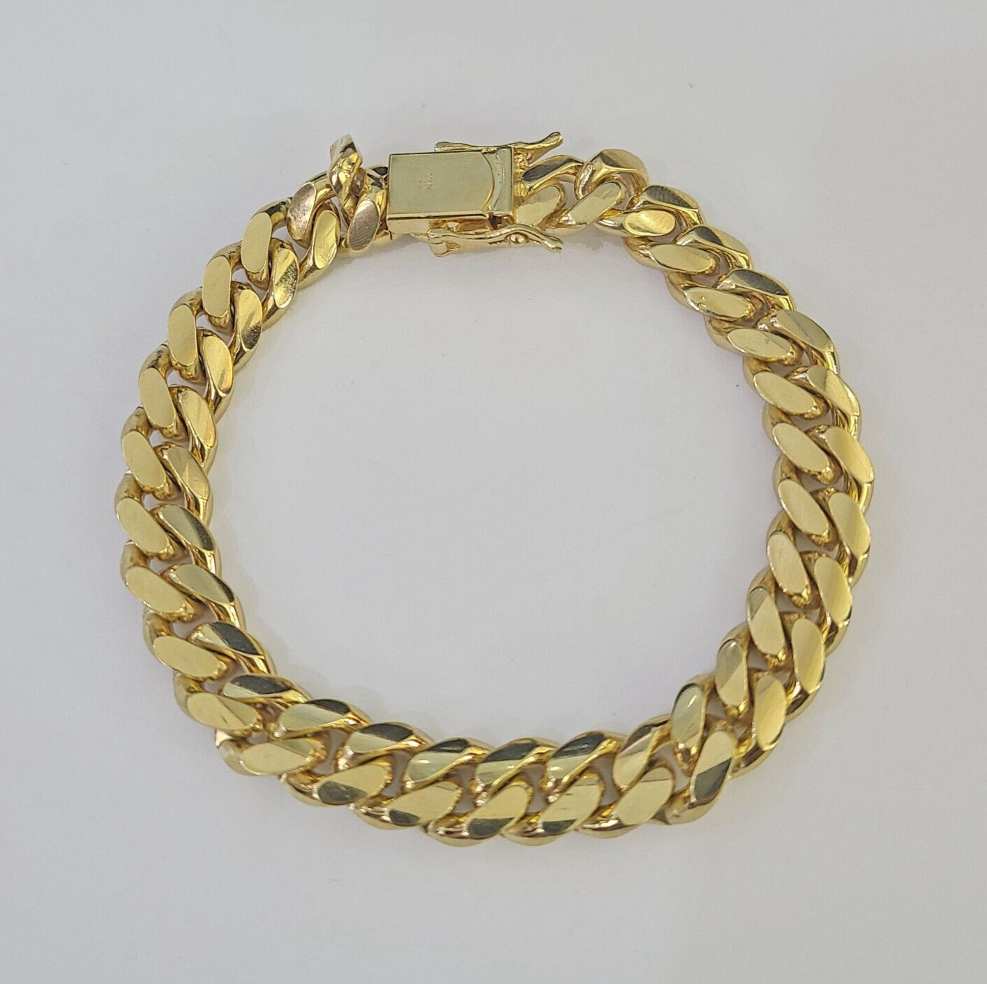 We present You with This Absolutely Stunning Real 10k Solid Yellow Gold Miami Cuban Bracelet. It has a detailed cut with a very good finish. These Beautiful Bracelet will not tarnish, discolor, or fade because they are Pure 10K Gold. Please feel free to contact us if you have any queries regarding the item. A52B7