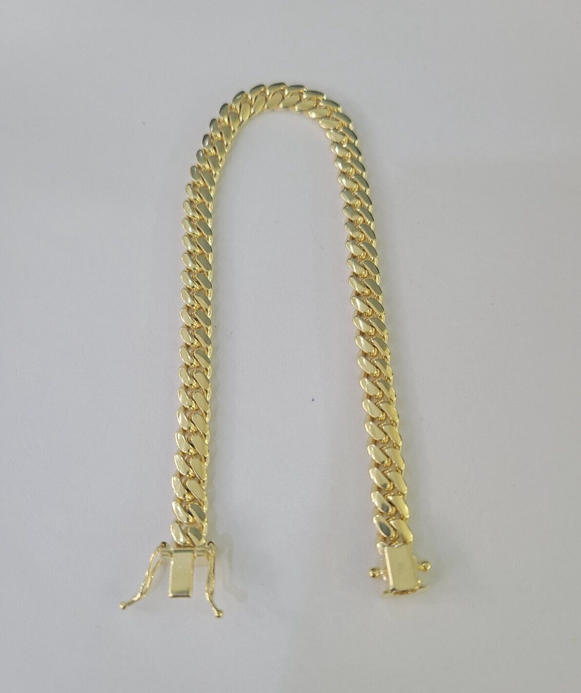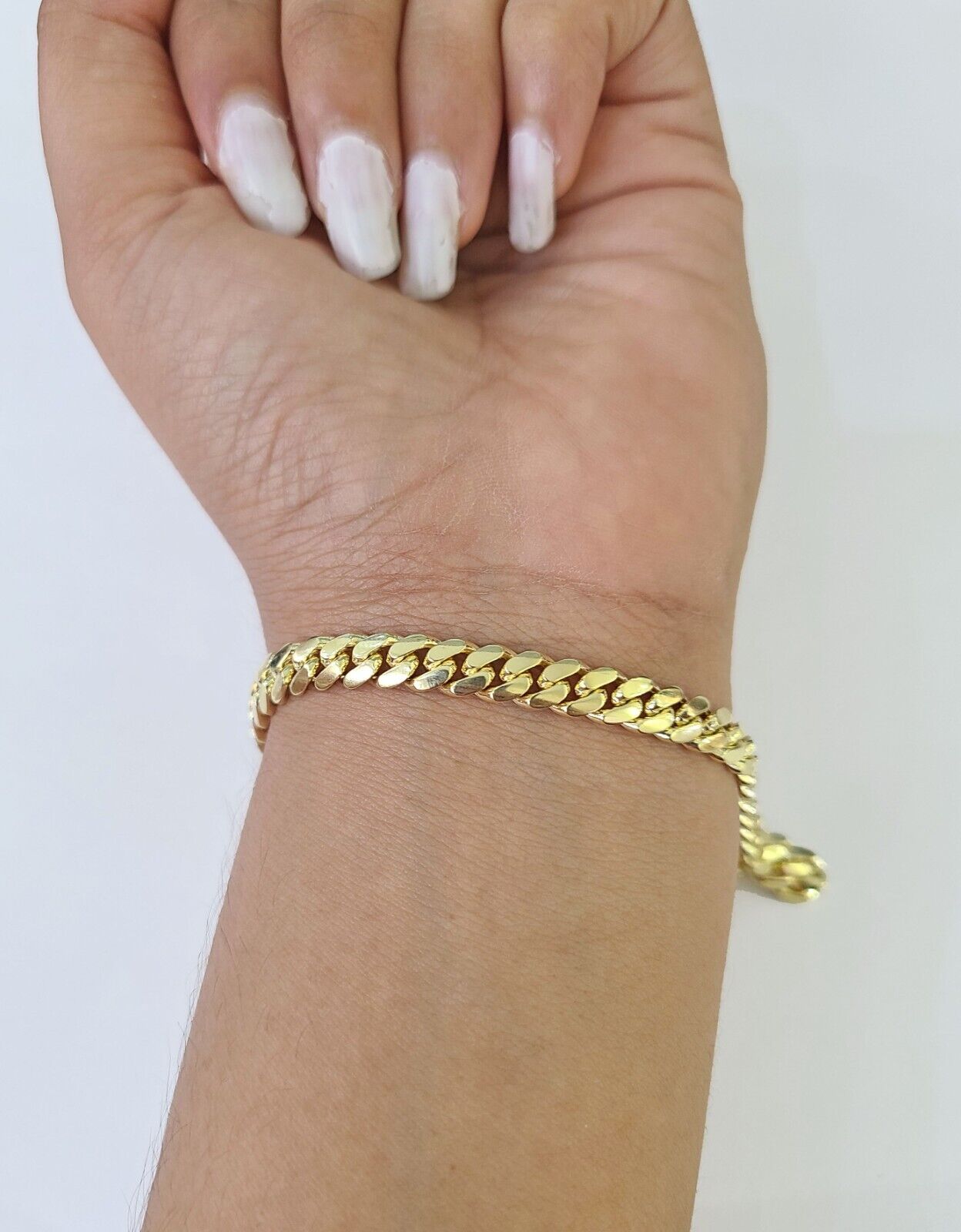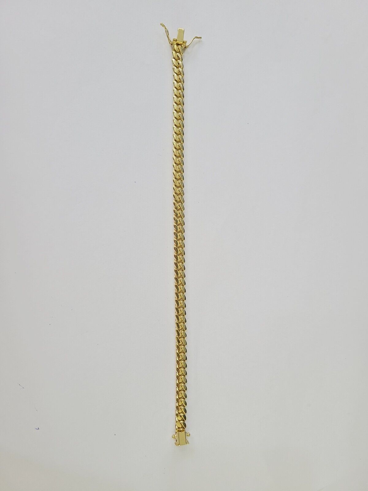 We present You with This Absolutely Stunning Real 10k Solid Yellow Gold Miami Cuban Bracelet. It has a detailed cut with a very good finish. These Beautiful Bracelet will not tarnish, discolor, or fade because they are Pure 10K Gold. Please feel free to contact us if you have any queries regarding the item. A23B6