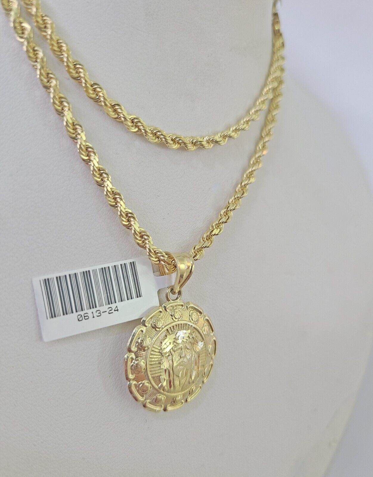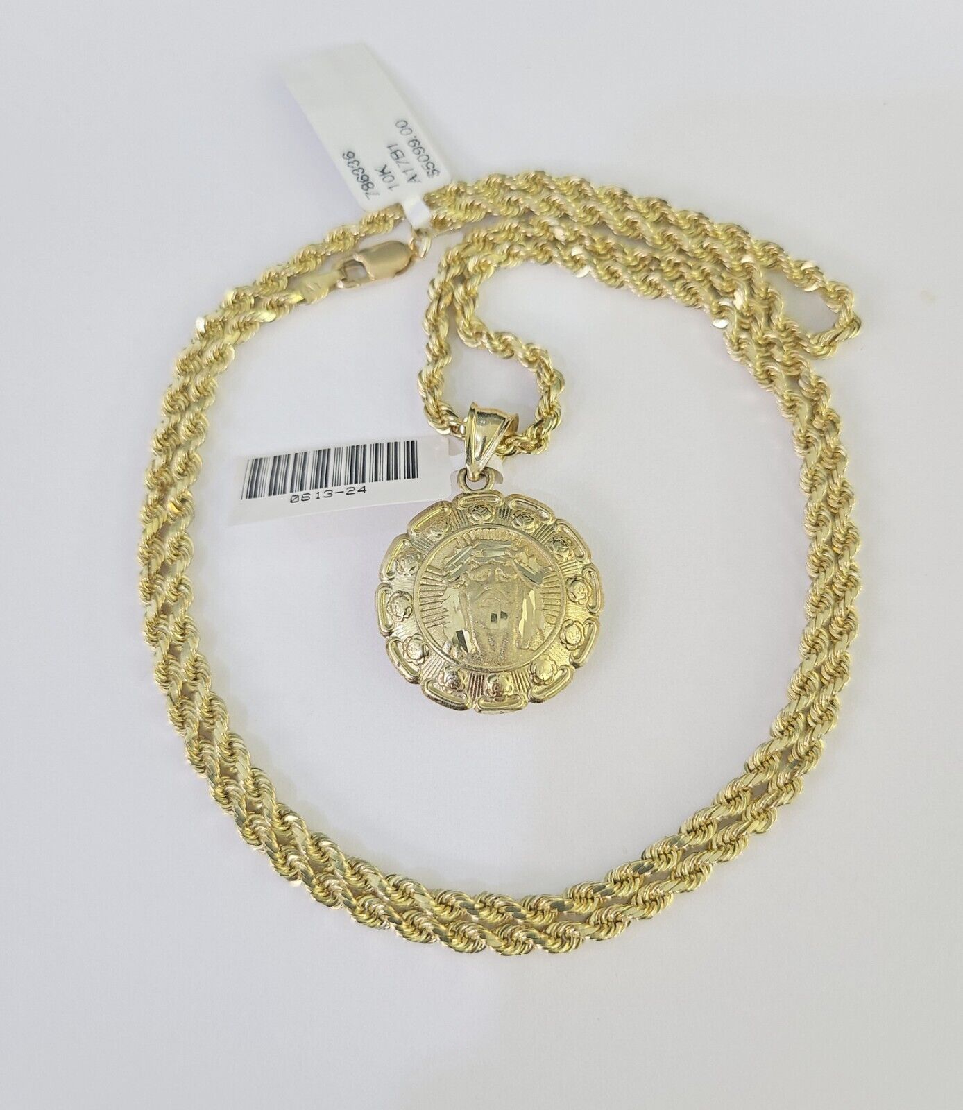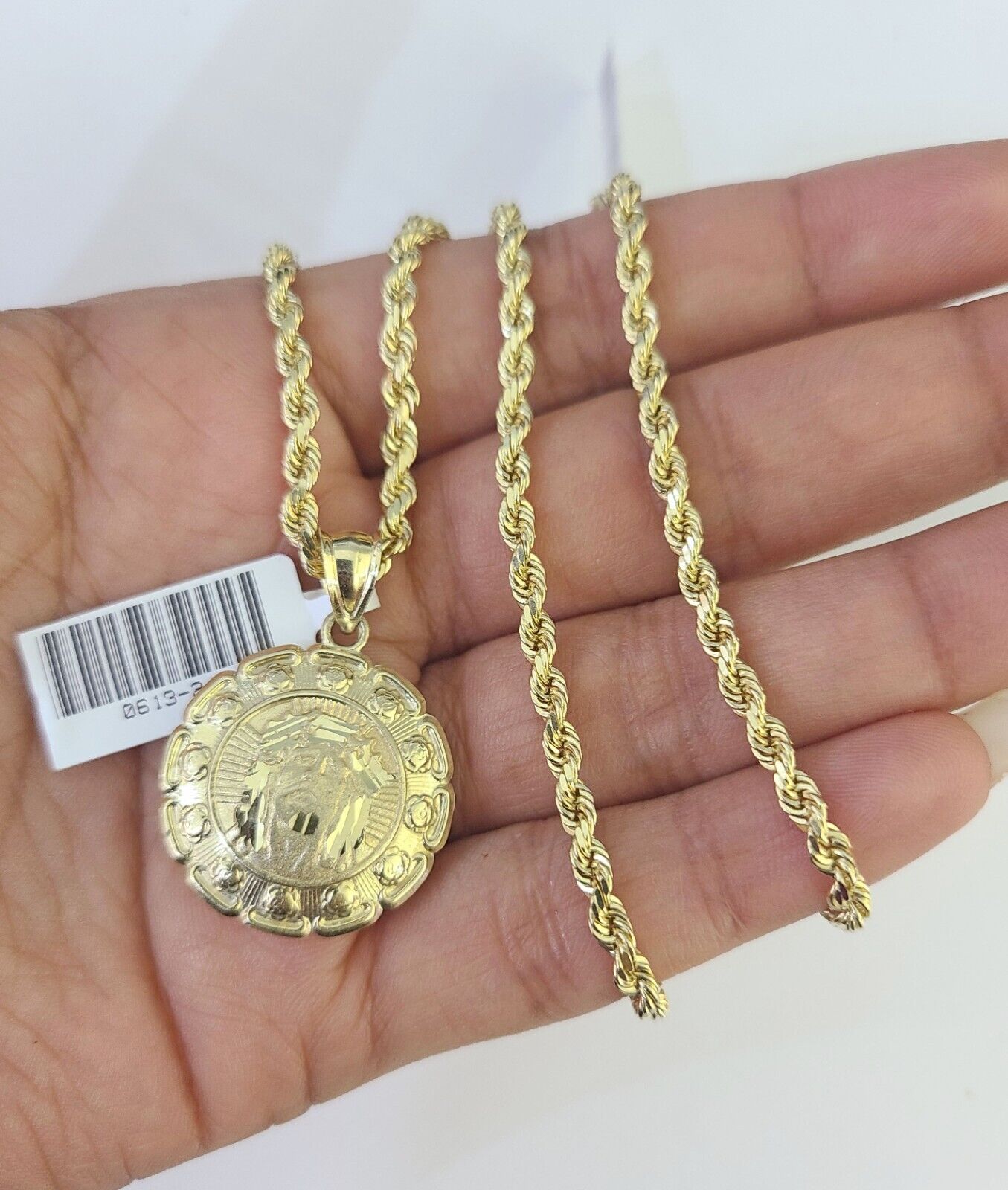 Is Presenting You with This Beautifully Designed Real 10k Yellow Gold Jesus Virgin Mary Two-Sided Charm 1-1.5 inches with 10k 3mm Solid Rope Chain in various lengths. Please feel free to contact us if you have any queries regarding the item. These Beautiful chains and pendants will not tarnish, discolor, or fade because they are Pure 10K Gold. 24"-A17B1 , A3B1