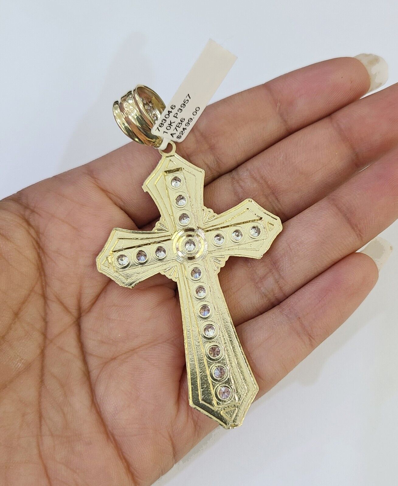 Is Presenting You with This Absolutely Stunning Real 10k Yellow Gold Solid Rope Chain 4mm, 18 inch-28 inches, Lobster Lock with a 10k Jesus Cross Pendant. These Beautiful chains and Pendant will not tarnish, discolor, or fade because they are Pure 10K Gold. We also have them in various another length and sizes. 24"-28.3 A7B6
