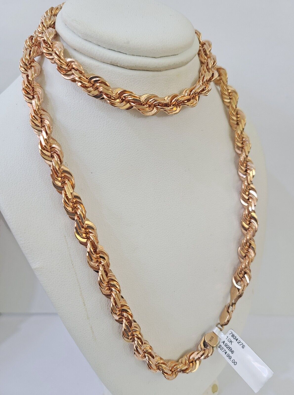 We present You with This Absolutely Stunning Solid Real 10k Rose Gold Solid Gold Rope Chain. It has a detailed cut with a very good finish. These Beautiful Pendants will not tarnish, discolor, or fade because they are Pure 10K Gold. Please feel free to contact us if you have any queries regarding the item.