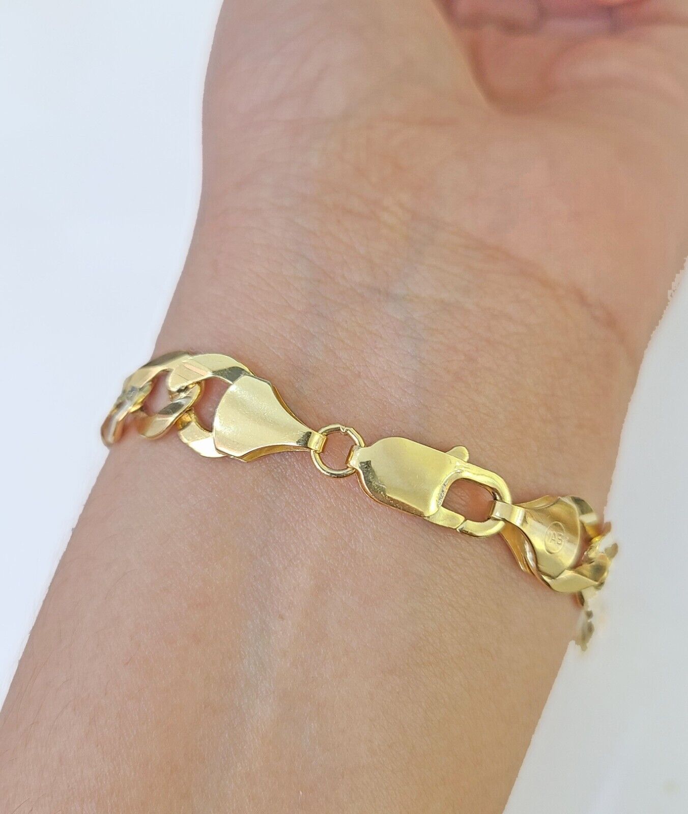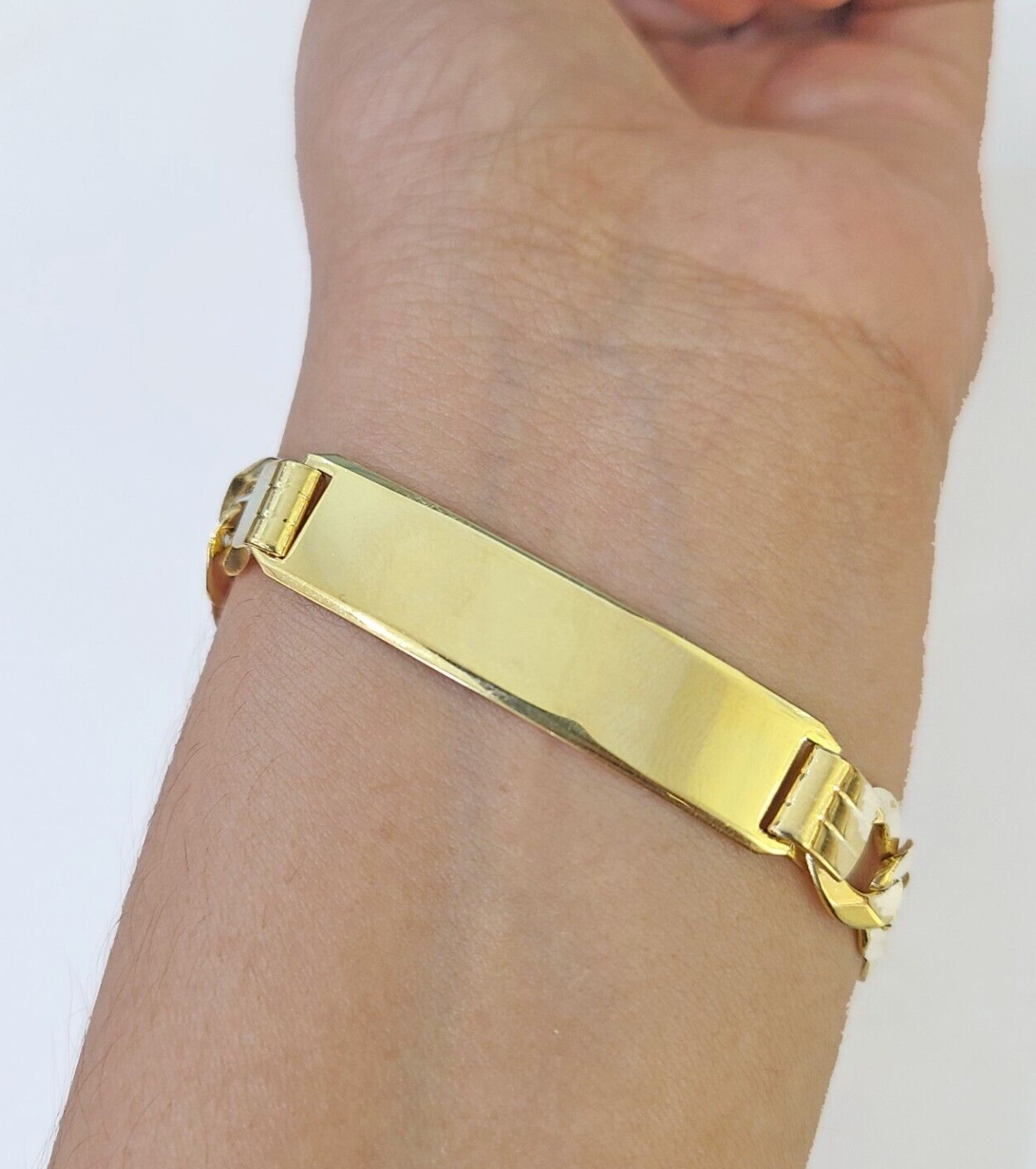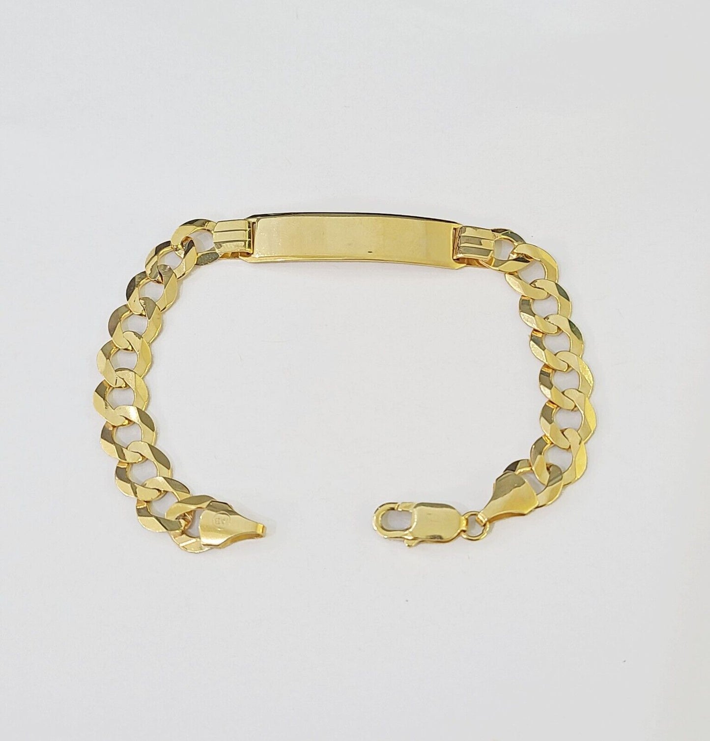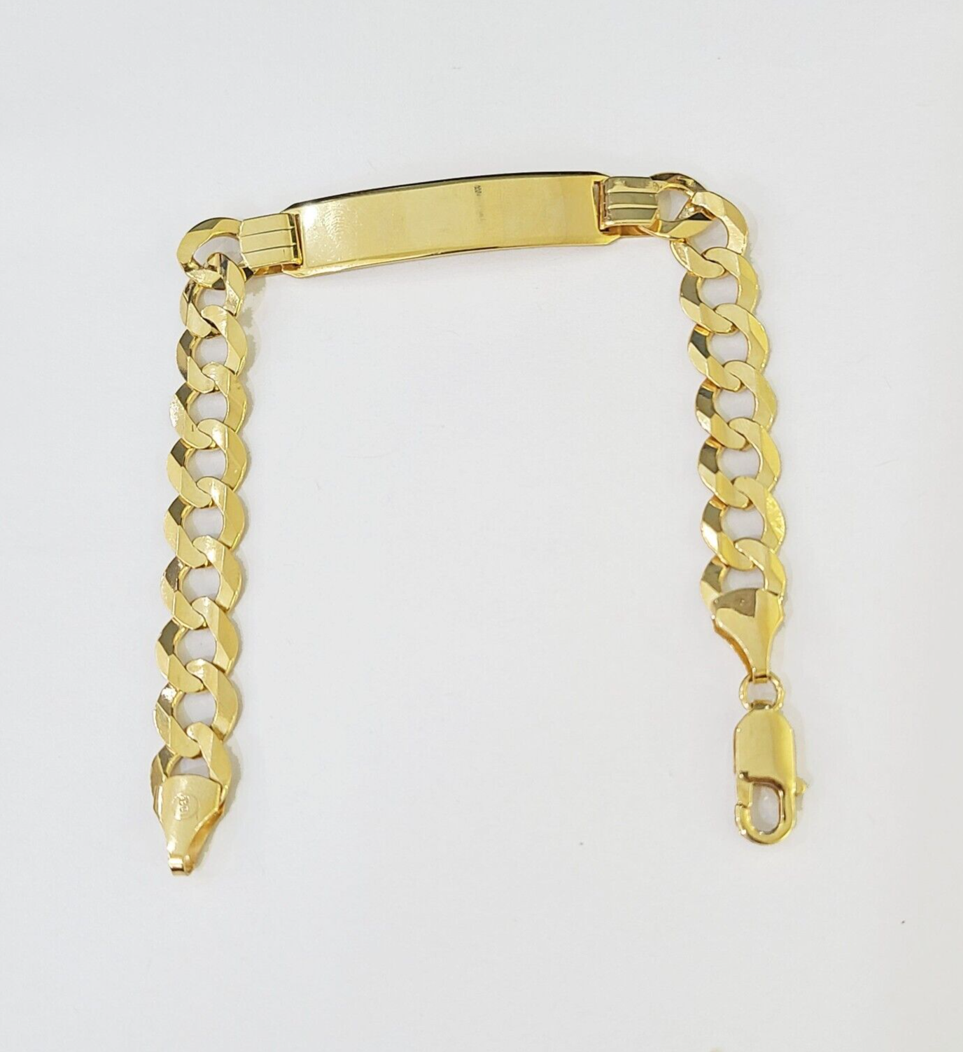 Is Presenting You with This Absolutely Stunning Real 10k Yellow Gold 9mm Cuban Link id bracelet 8 Inch (approx.) length. These Beautiful hand Bracelets will not tarnish, discolor, or fade because they are Pure 10K Gold. We also have them in various another sizes. Please feel free to contact us if you have any queries regarding the item.