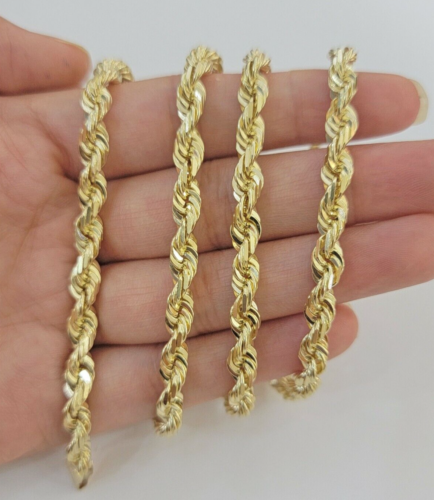 6mm Rope chain Necklace Solid 10k Yellow Gold Diamond Cuts 22 Inch Long