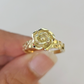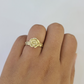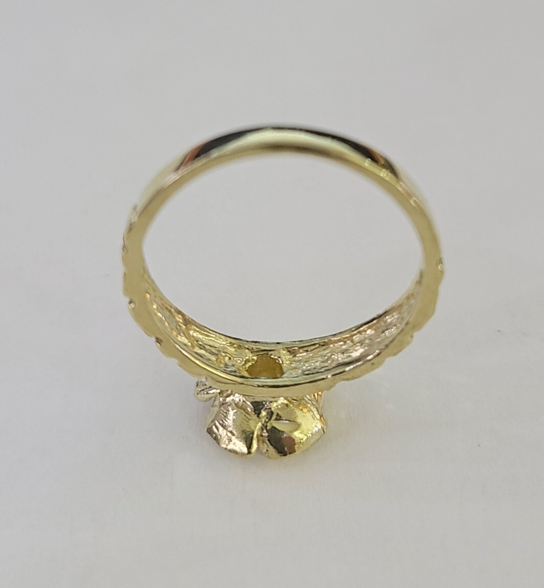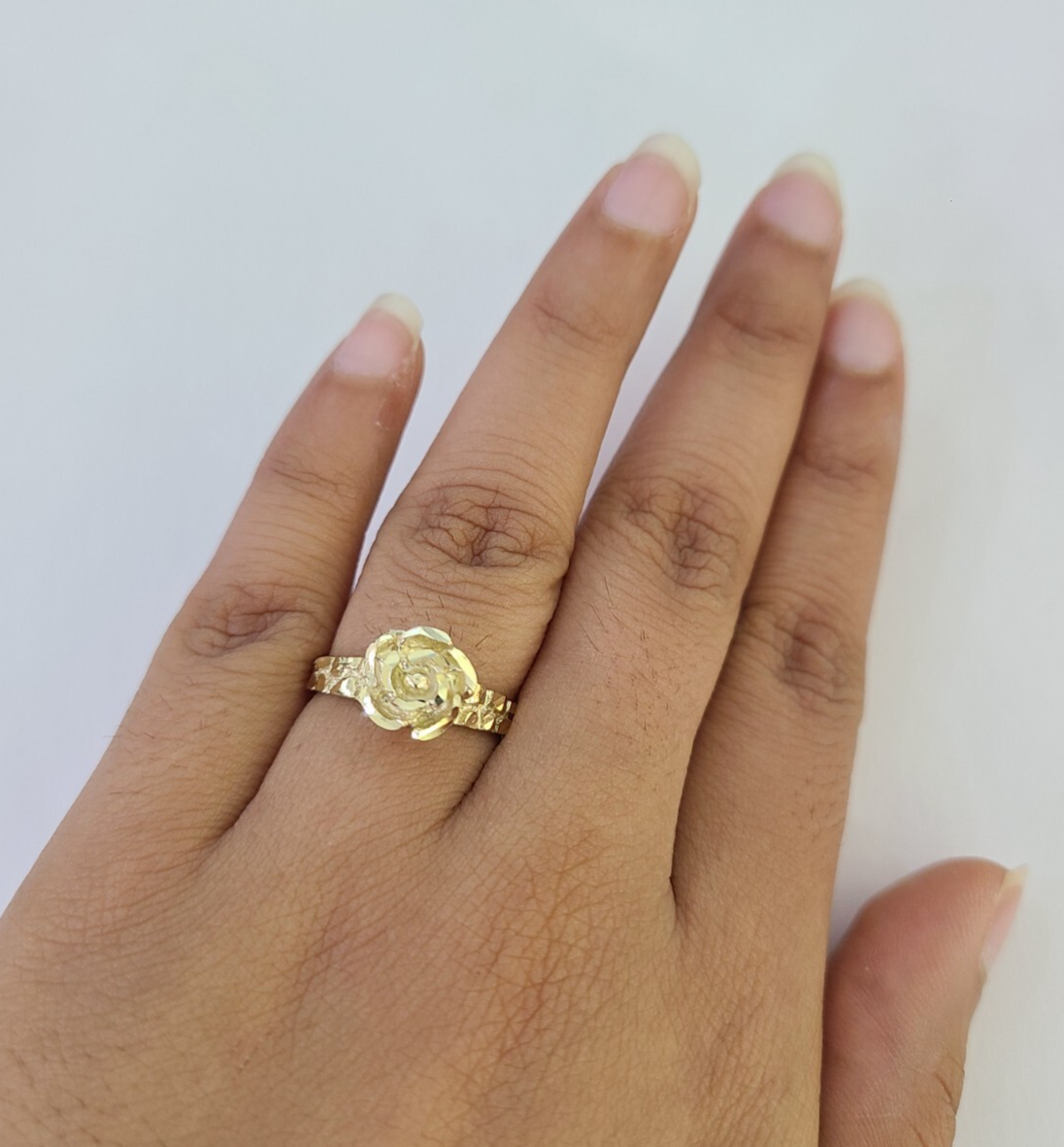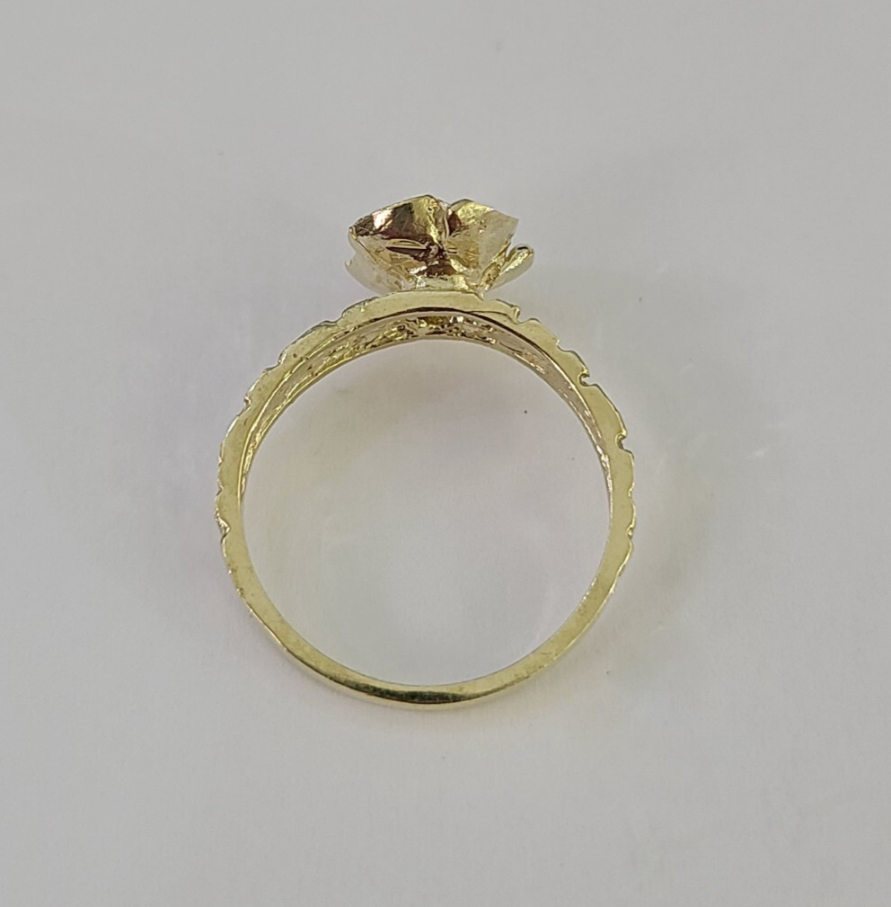 Real 10K Yellow Rose Flower Nugget Gold Ring. The shape is Round, Traditional and Classic & Timeless. It flaunts Extra ordinary Design ring. It comes with standard size 6.5, and the ring is sizable. Sizing the ring will cost you extra $19.99 on your demand.
