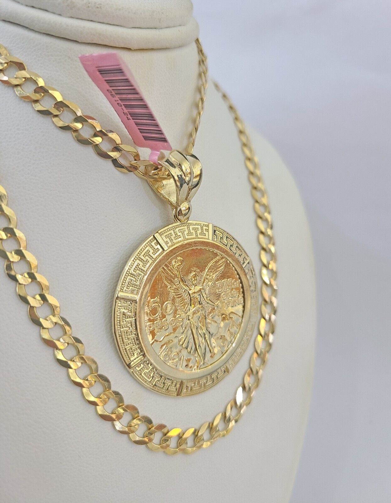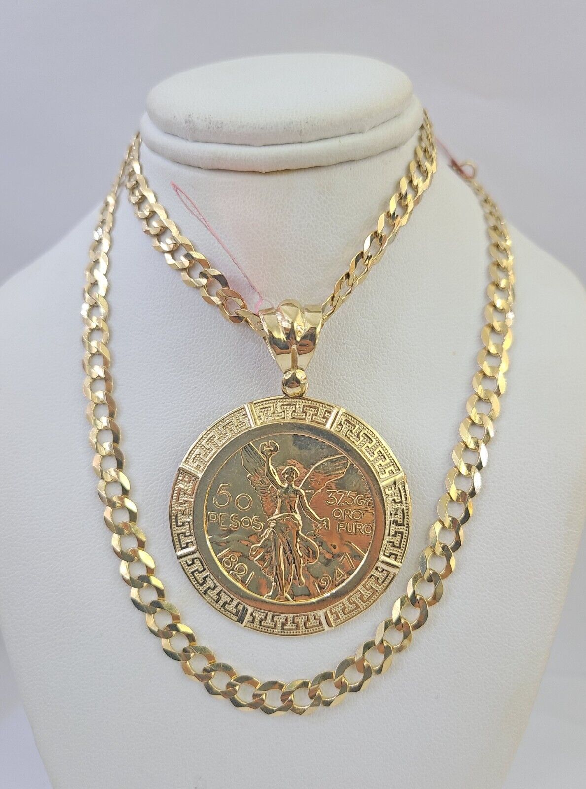 We present You with This Absolutely Stunning Real 14k Yellow Gold SOLID Cuban Curb link Chain with Centenario Coin Charm. It has a detailed cut with a very good finish. These Beautiful Chains will not tarnish, discolor, or fade because they are Pure 14K Gold. Please feel free to contact us if you have any queries regarding the item. 22"-A19B4 A12B0