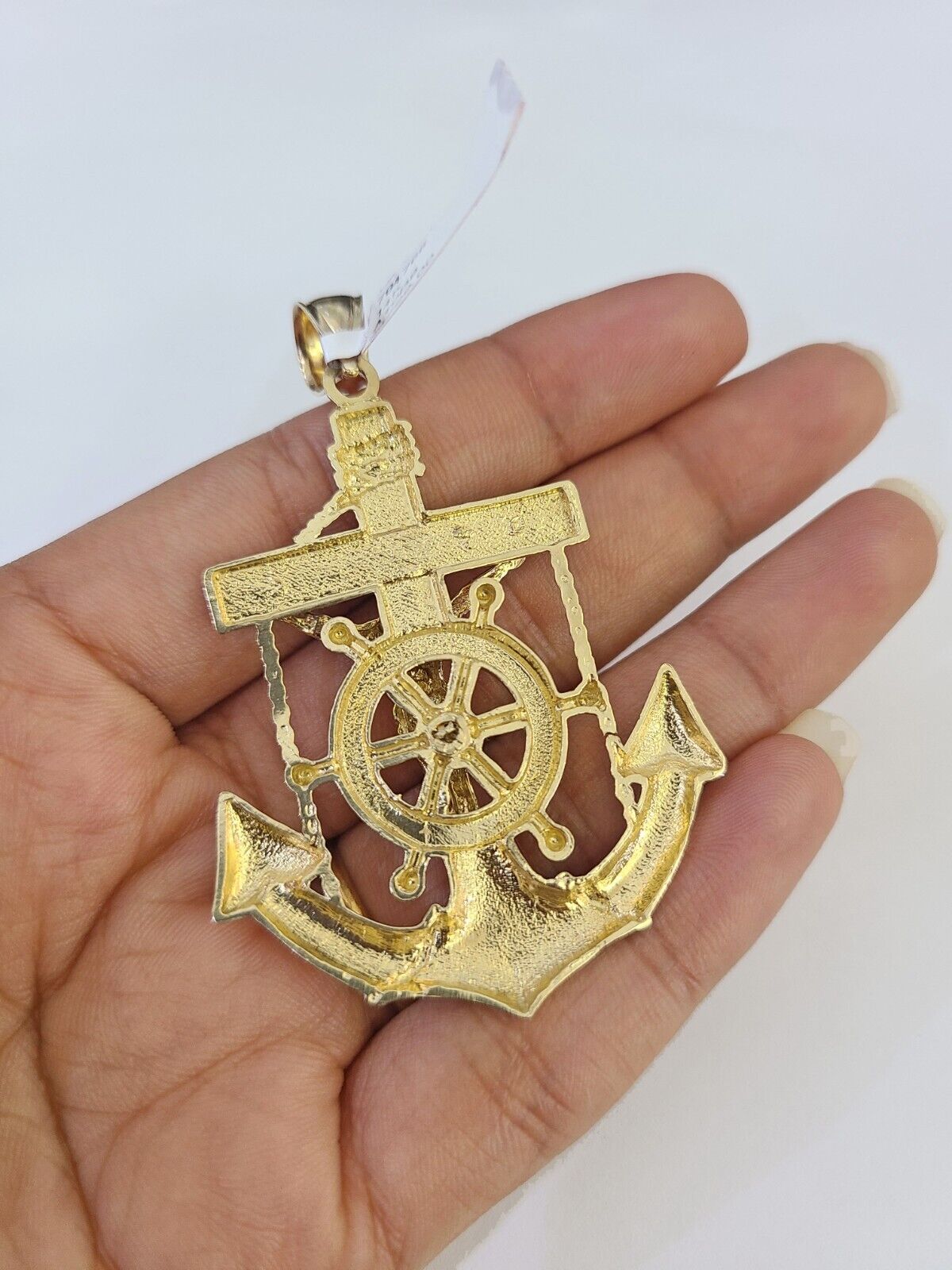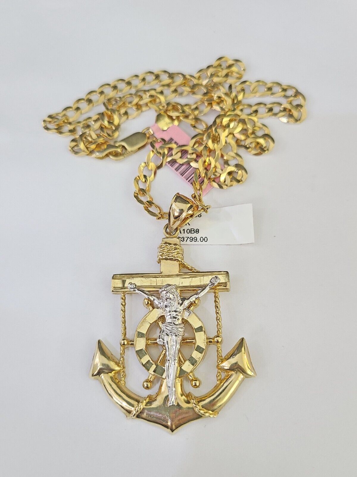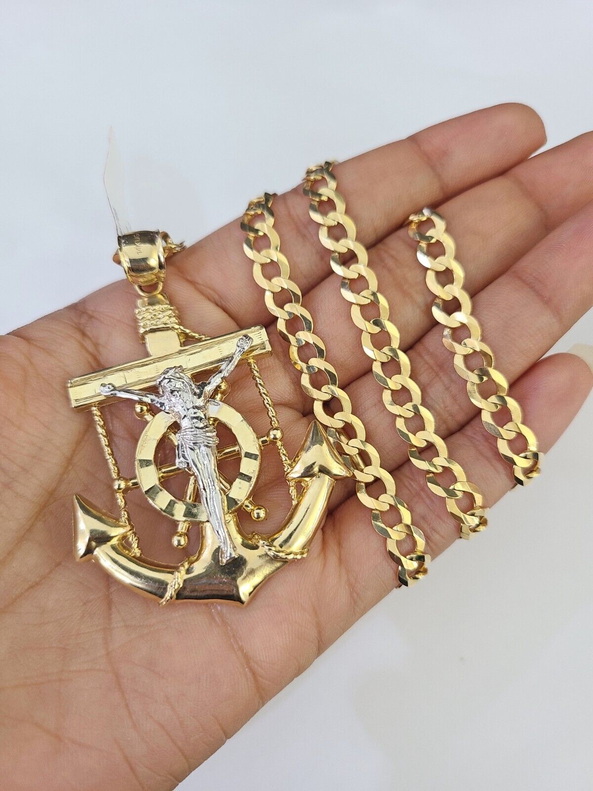 We present You with This Absolutely Stunning Real 14k Yellow Gold SOLID Cuban Curb link Chain with Jesus Anchor Charm. It has a detailed cut with a very good finish. These Beautiful Chains will not tarnish, discolor, or fade because they are Pure 14K Gold. Please feel free to contact us if you have any queries regarding the item. 22"-A19B4 A10B8