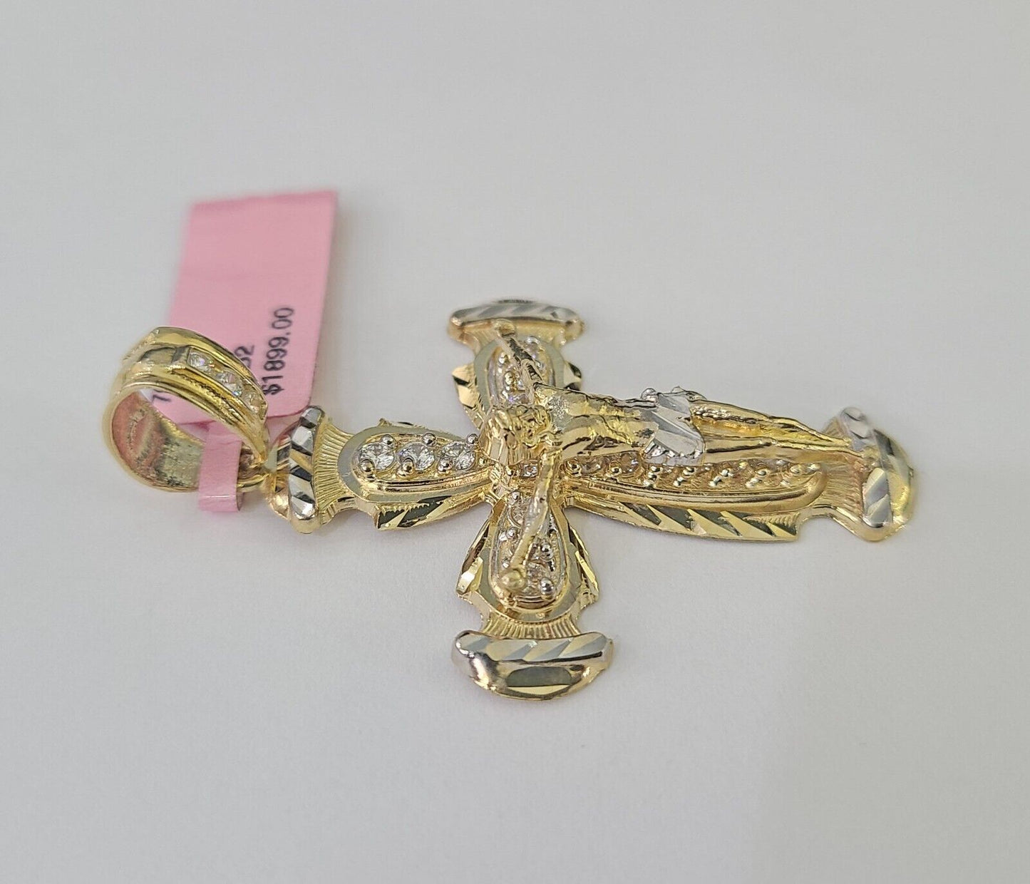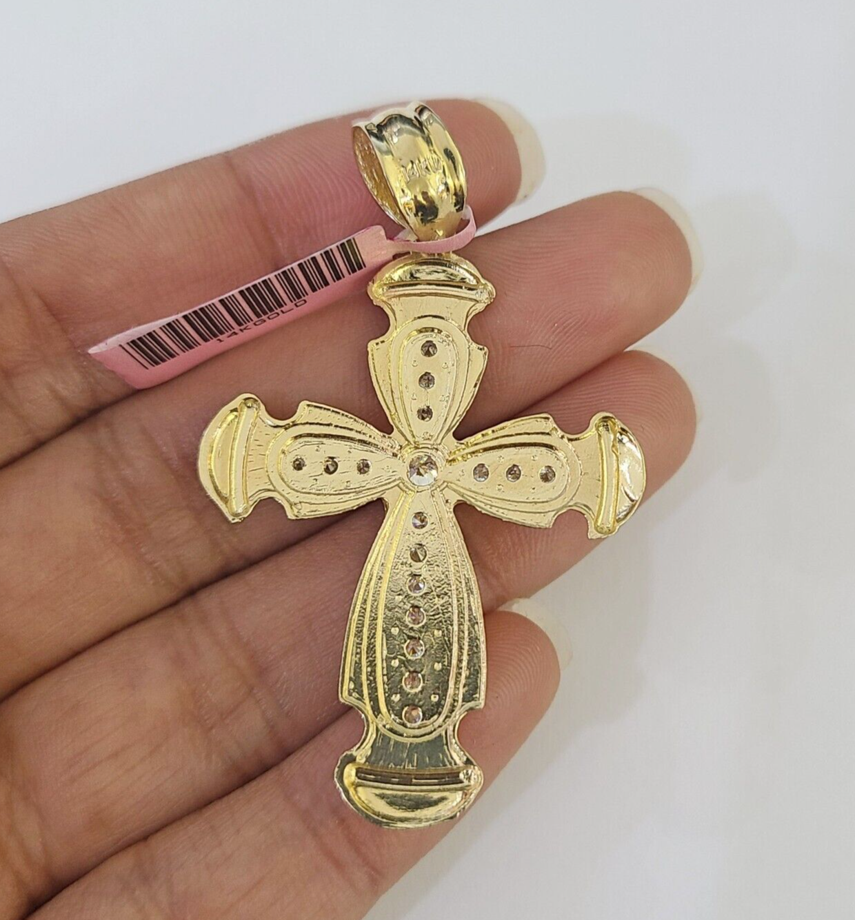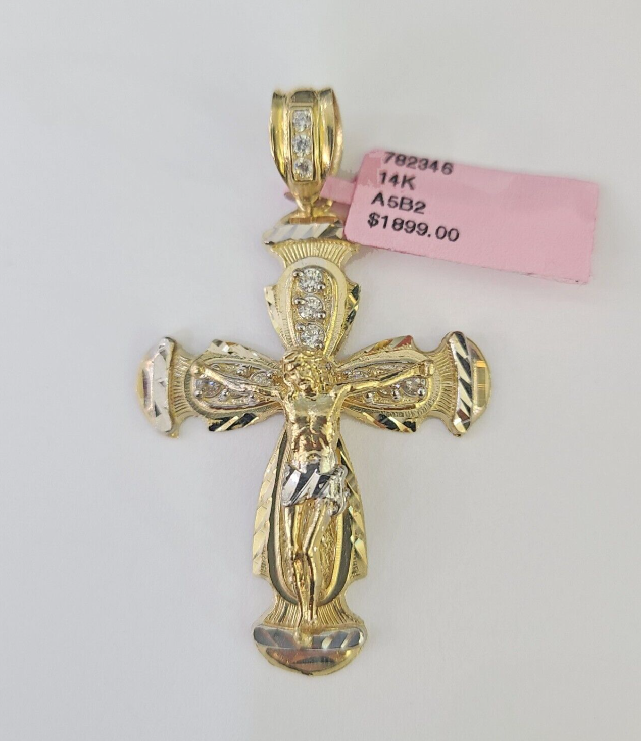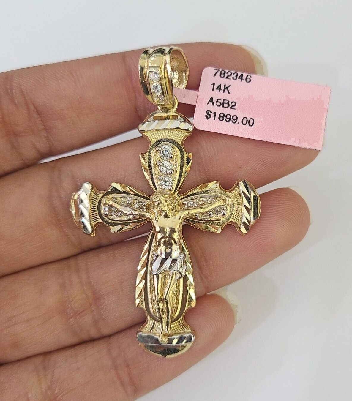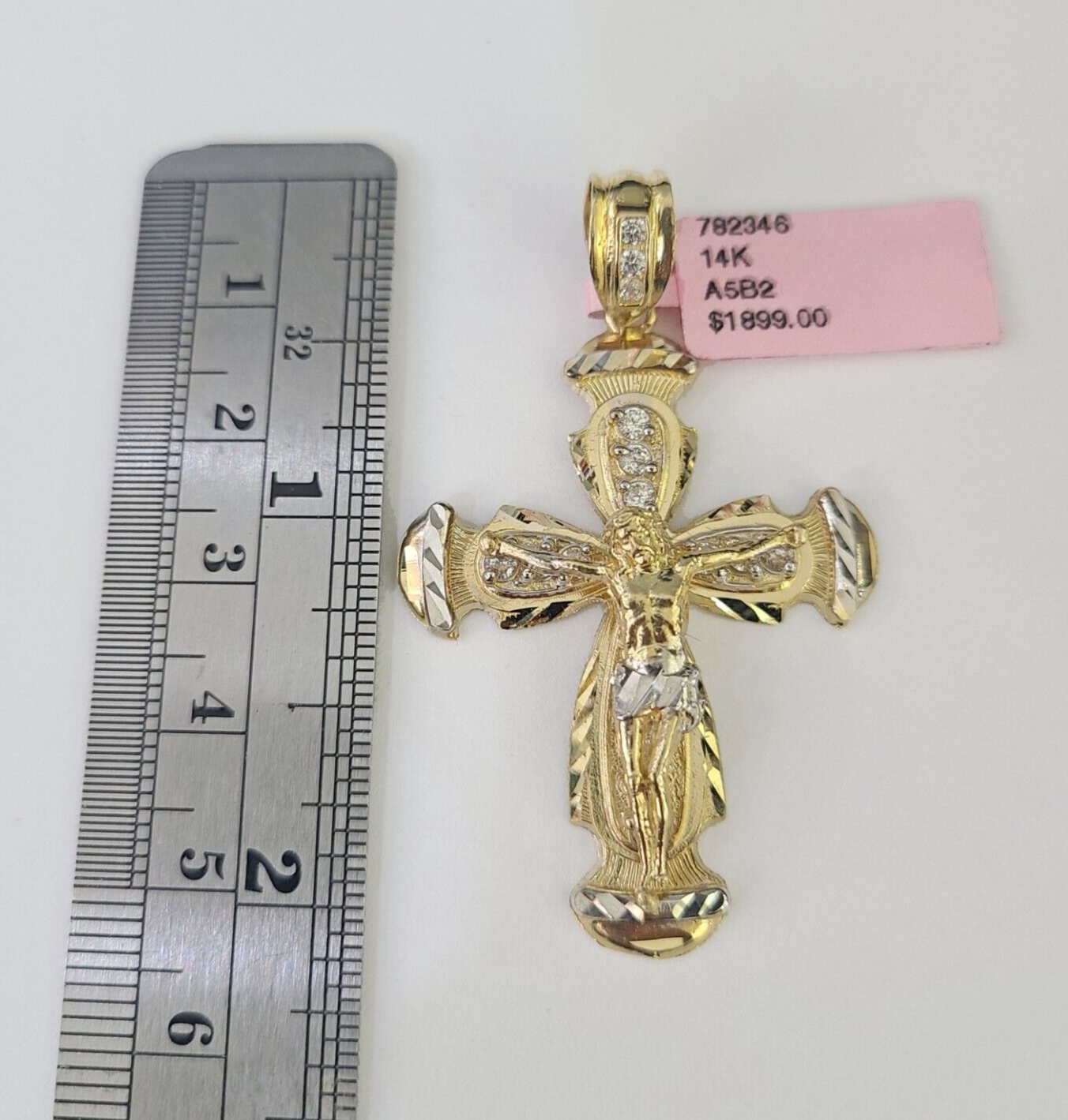 We present You with This Absolutely Stunning Real 14k Jesus Cross Charm. It has a detailed cut with a very good finish. This Pendant will not tarnish, discolor, or fade because they are Pure 14K Gold. Please feel free to contact us if you have any queries regarding the item. A5B2