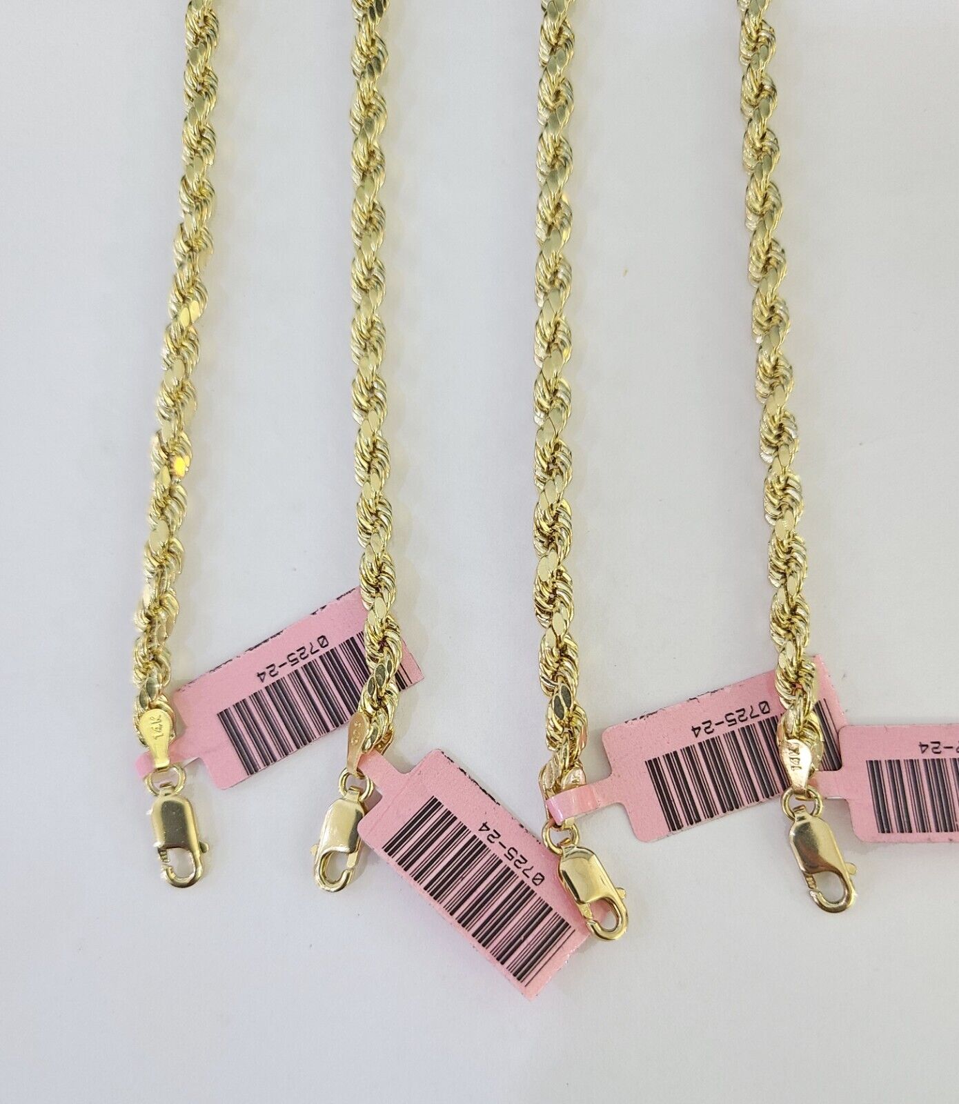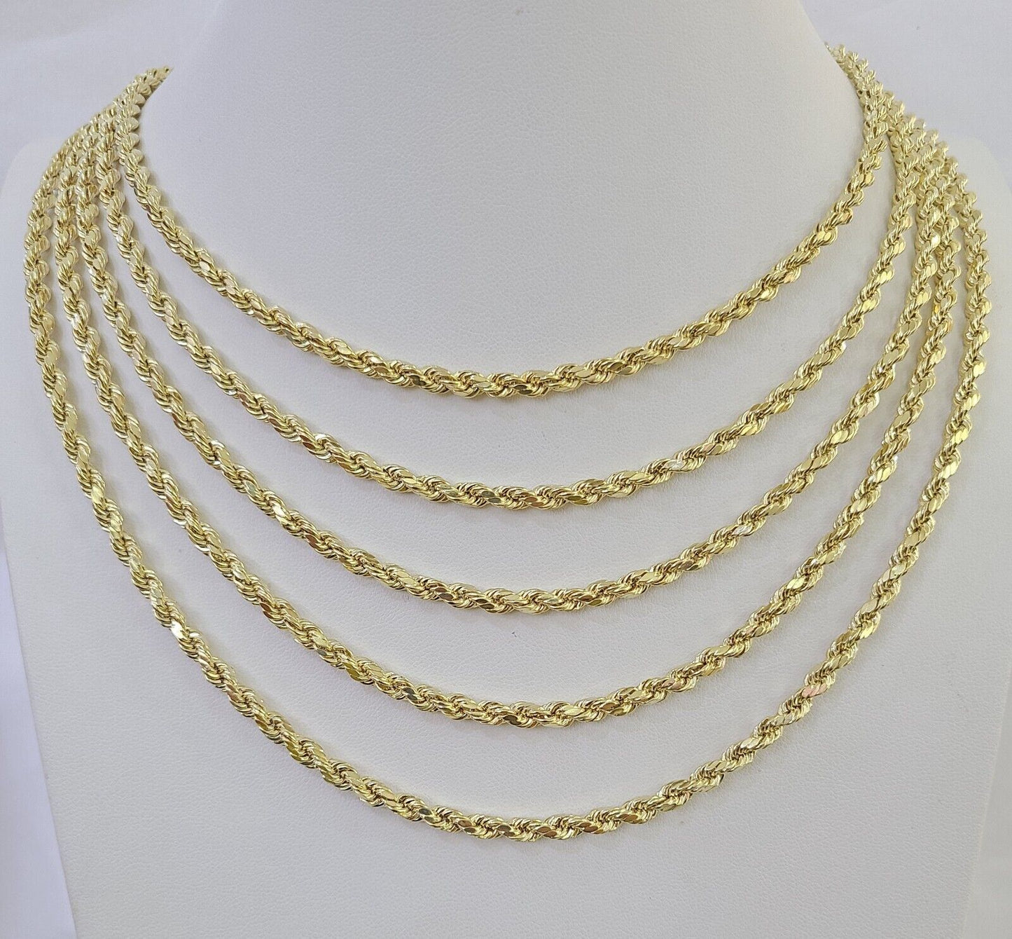 We present You with This Absolutely Stunning Real 14k Yellow Gold Rope Chain. It has a detailed cut with a very good finish. These Beautiful Pendants will not tarnish, discolor, or fade because they are Pure 14K Gold. Please feel free to contact us if you have any queries regarding the item. 24"-A8B7