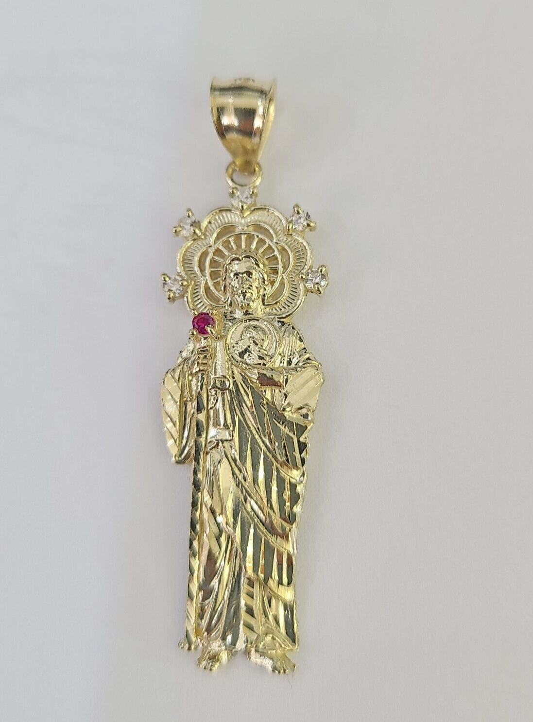 We present You with This Absolutely Stunning Real 10k Yellow Gold Saint Jude Charm Pendant. It has a detailed cut with a very good finish. This Beautiful Pendant will not tarnish, discolor, or fade because it is Pure 10K Gold. Please feel free to contact us if you have any queries regarding the item. A2B8