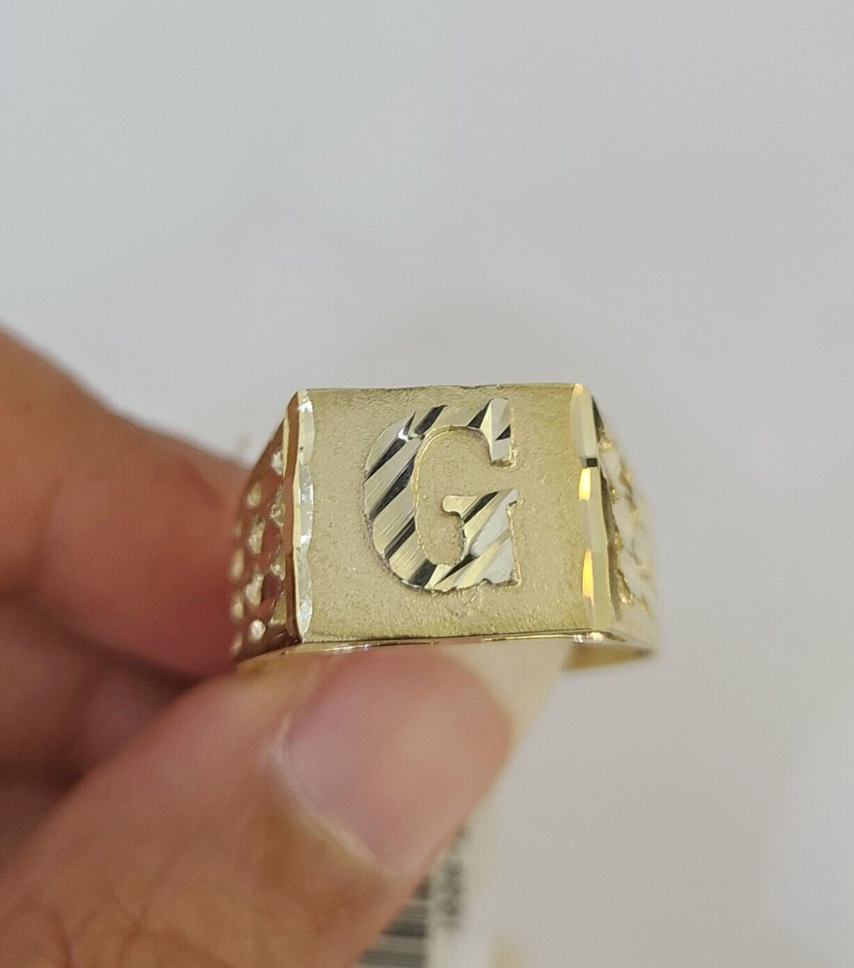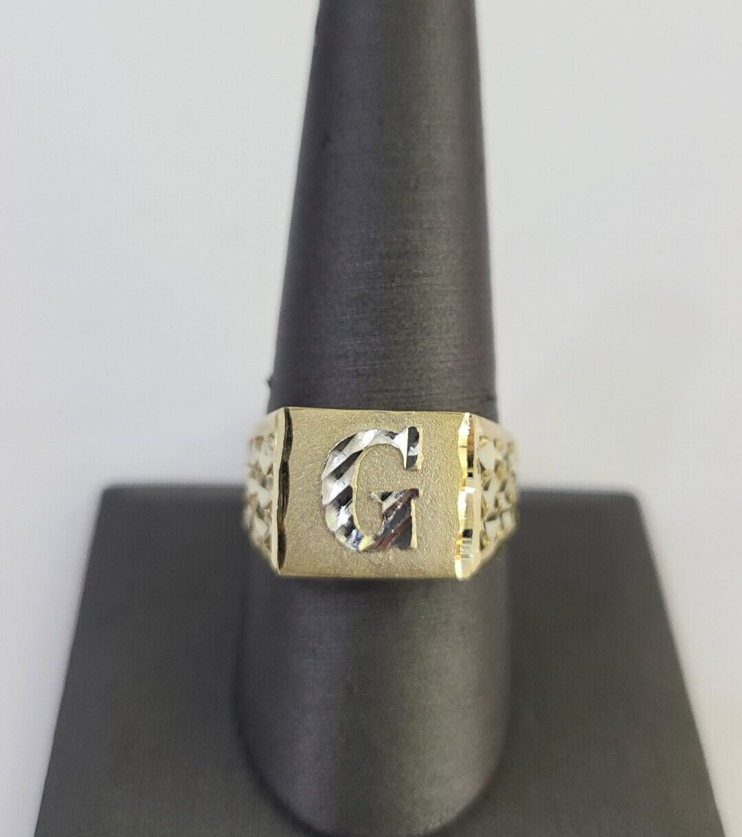 Is Presenting You with This Absolutely Stunning Real 10k Yellow Gold Initial "G" Alphabet Ring. These Beautiful ring will not tarnish, discolor, or fade because they are Pure 10K Gold. We also have them in various another sizes. Please feel free to contact us if you have any queries regarding the item.