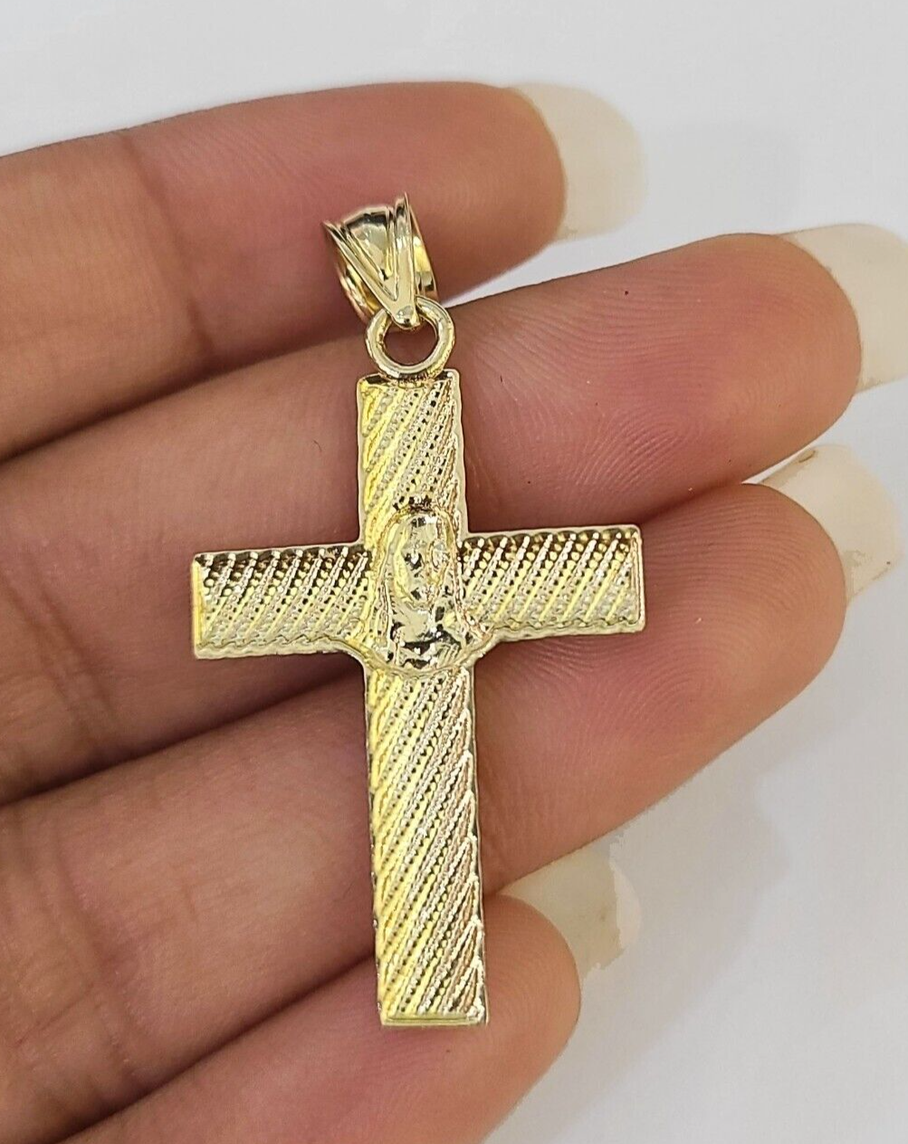Is Presenting You with This Absolutely Stunning Real 10k Jesus Cross Charm . These Beautiful pendant will not tarnish, discolor, or fade because they are Pure 10K Gold. Please feel free to contact us if you have any queries regarding the item.