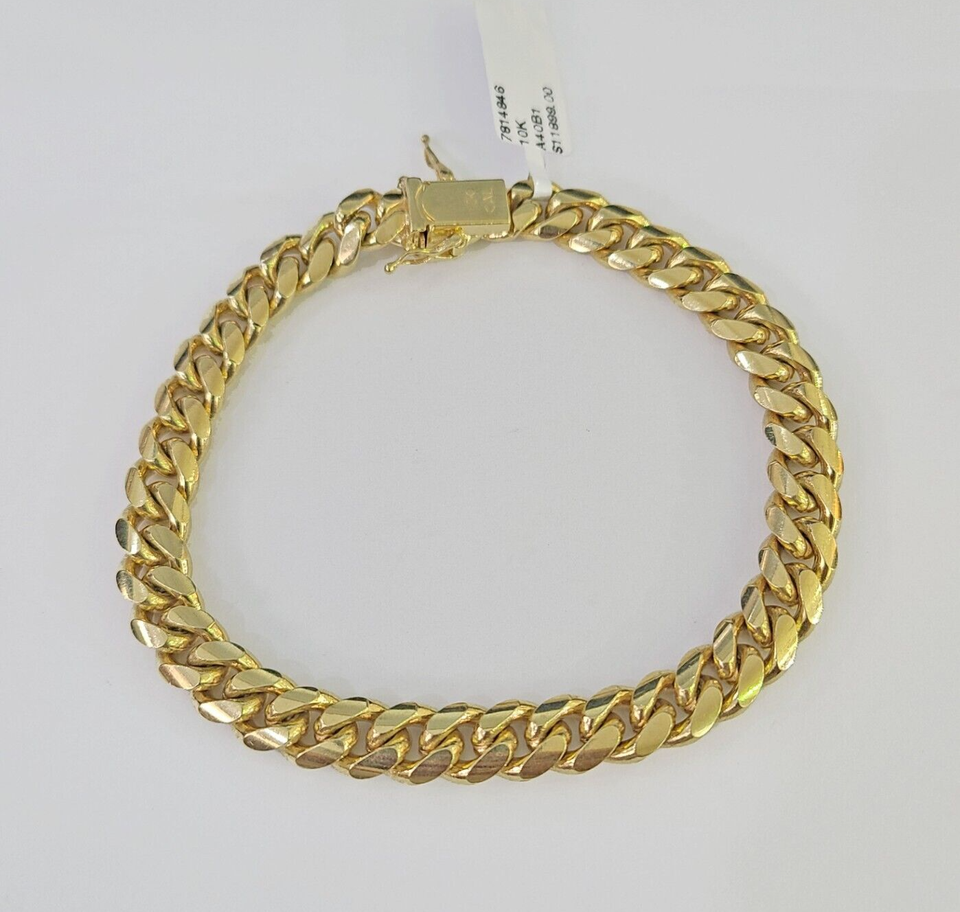 We present You with This Absolutely Stunning Real 10k Yellow Gold Miami Cuban Bracelet. It has a detailed cut with a very good finish. These Beautiful Bracelet will not tarnish, discolor, or fade because they are Pure 10K Gold. Please feel free to contact us if you have any queries regarding the item.
