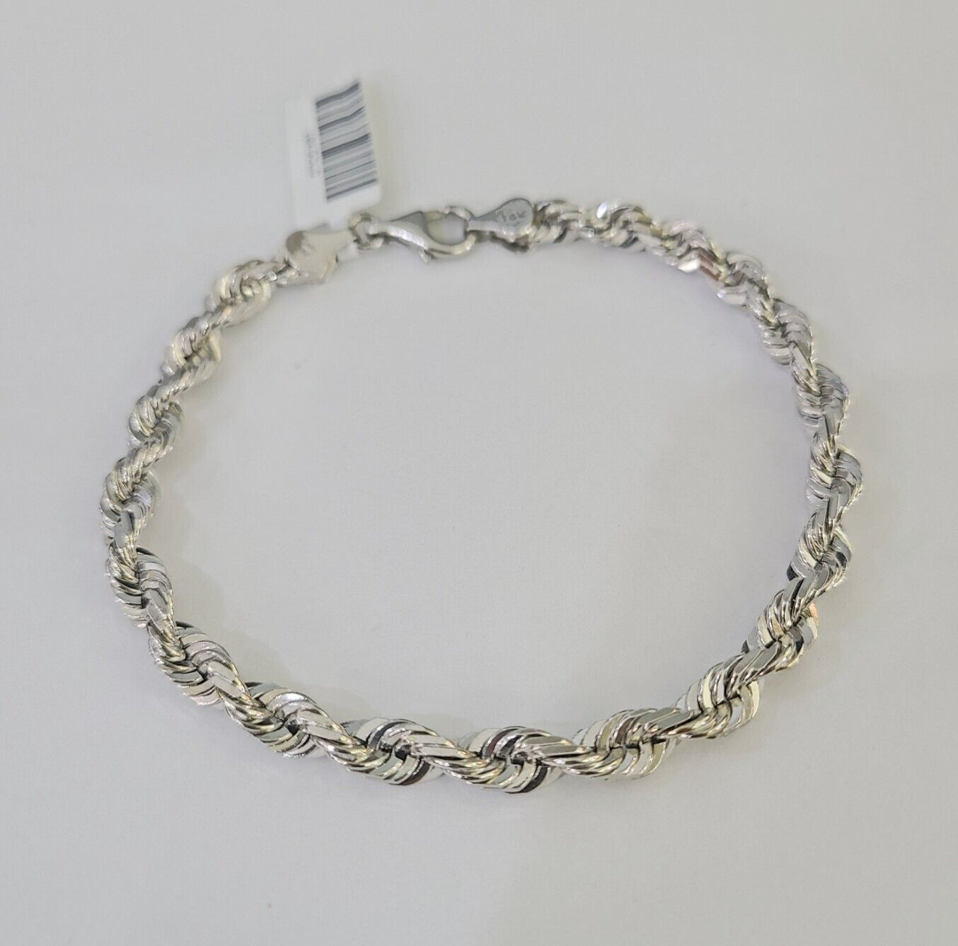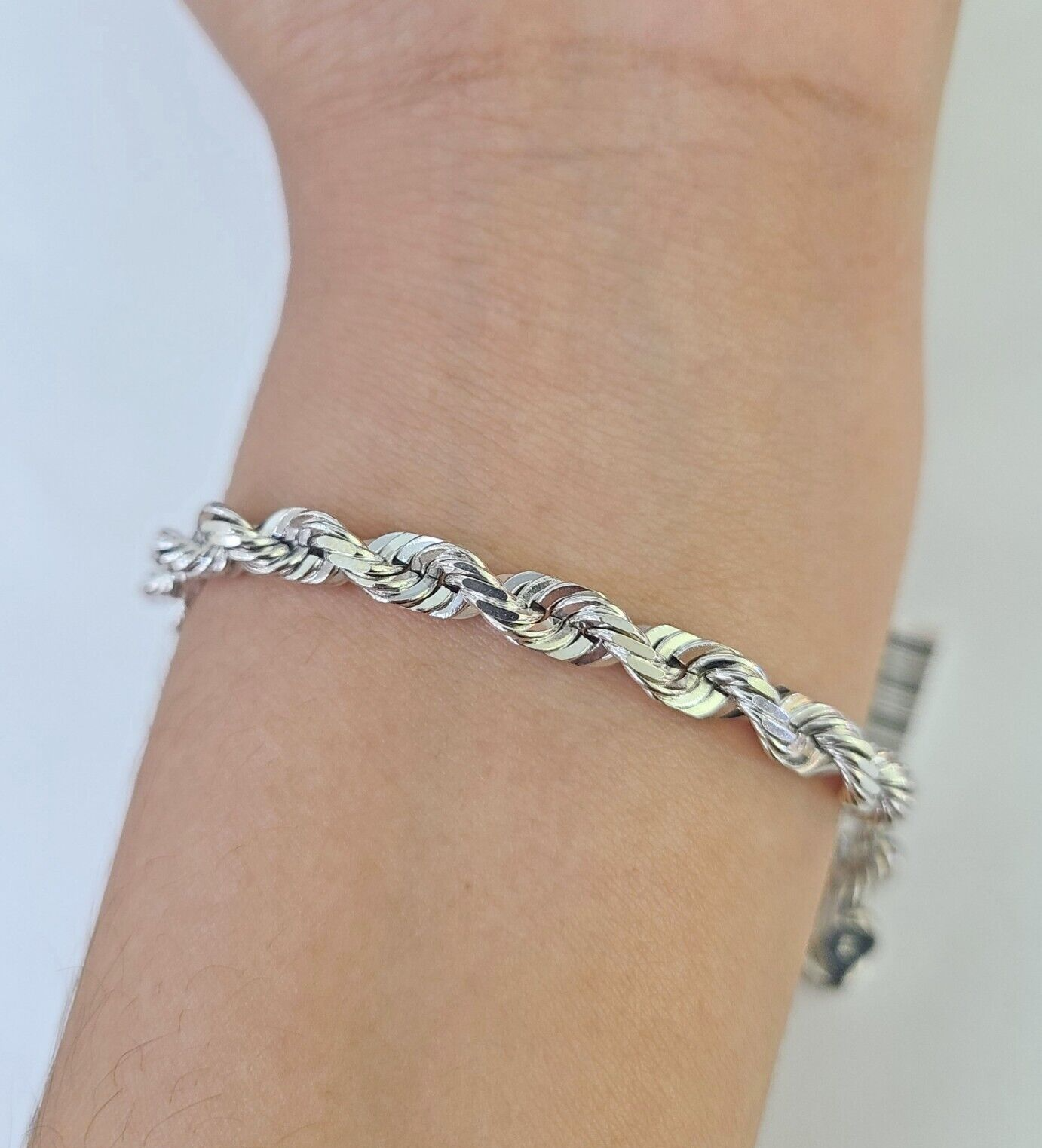 Real 10K White Gold Rope Bracelet 5mm 8.5" Lobster Lock
