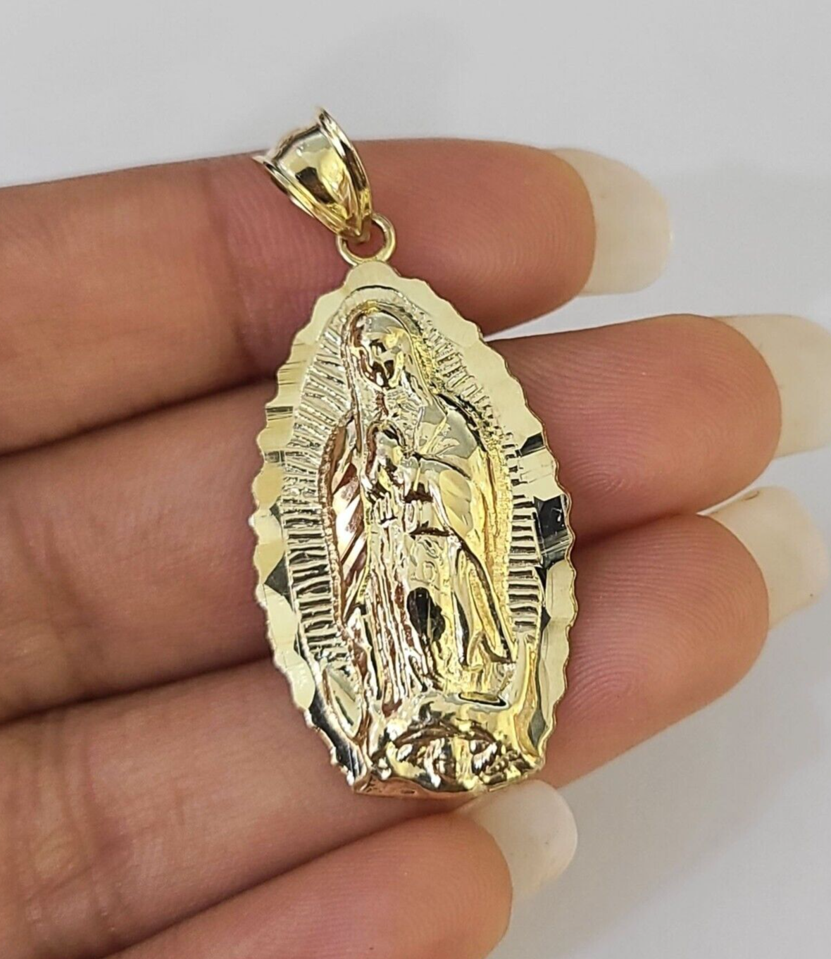 We present You with This Absolutely Stunning Real 10k Yellow Gold Virgin Mary Charm Pendant. It has a detailed cut with a very good finish. This Beautiful Pendant will not tarnish, discolor, or fade because it is Pure 10K Gold. Please feel free to contact us if you have any queries regarding the item. ASK A2B7