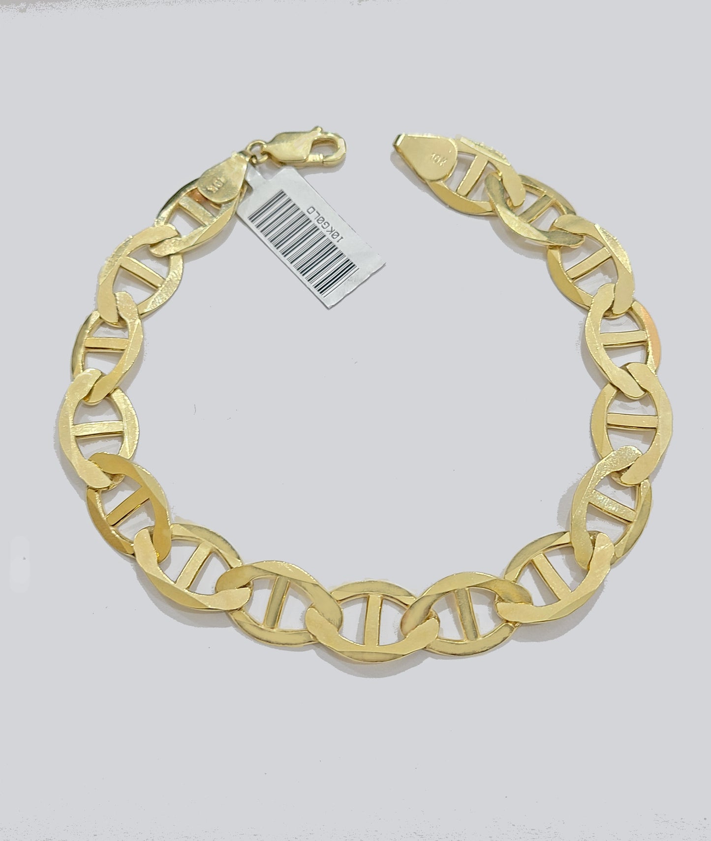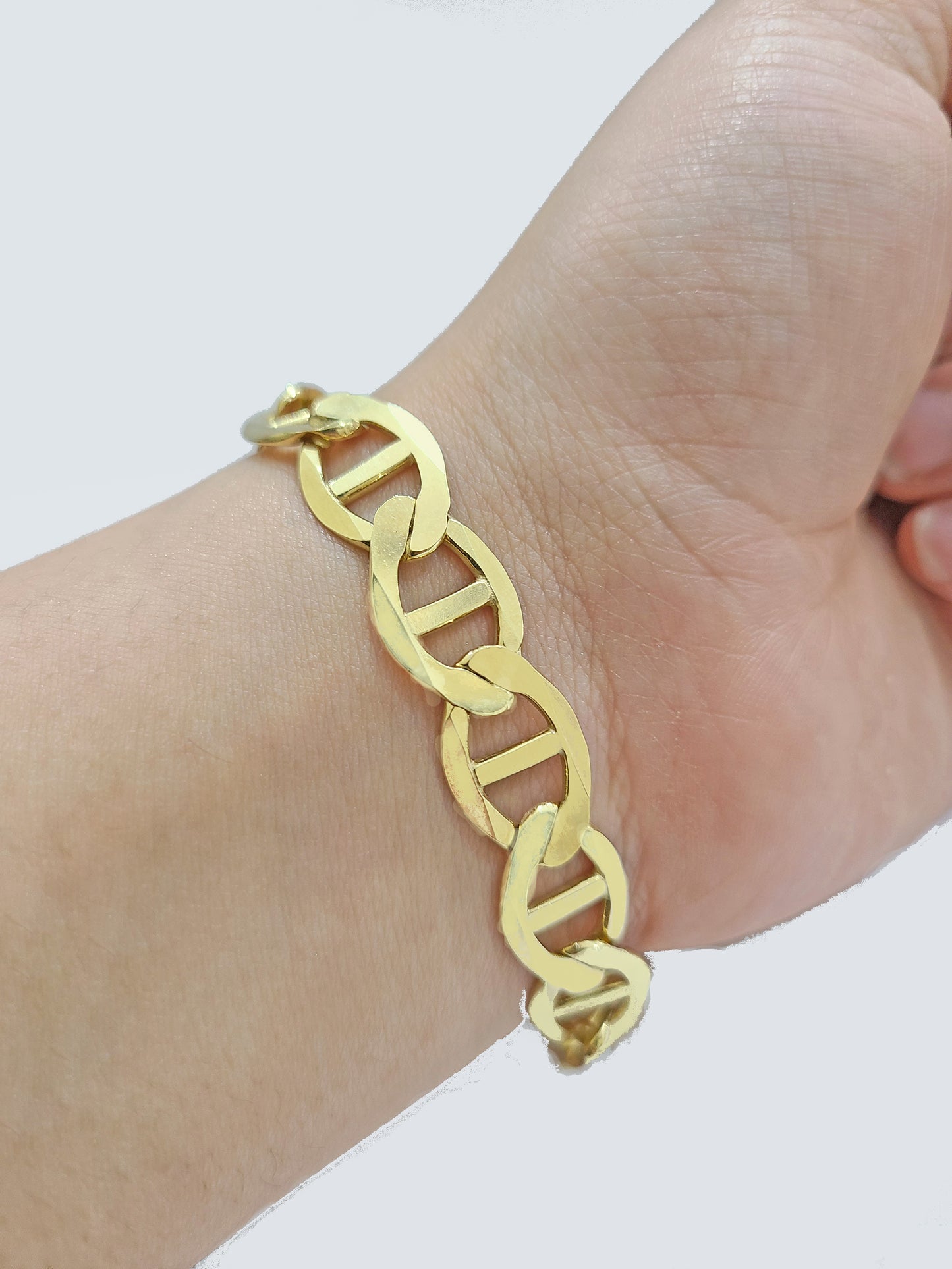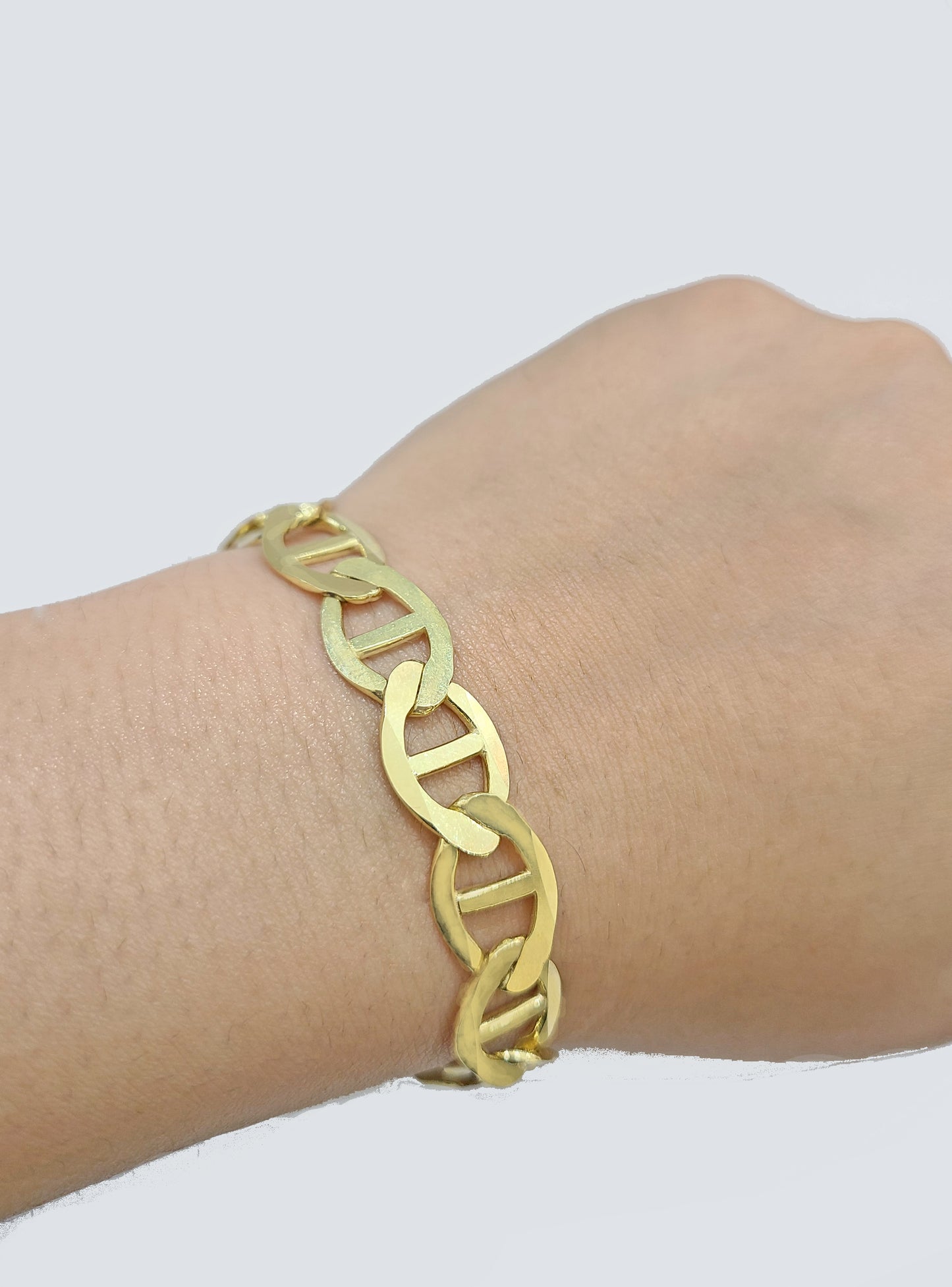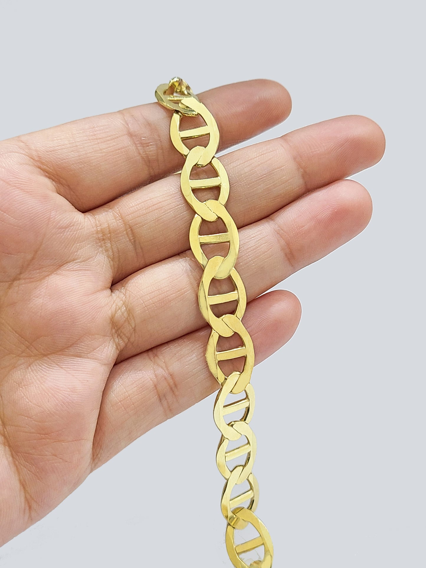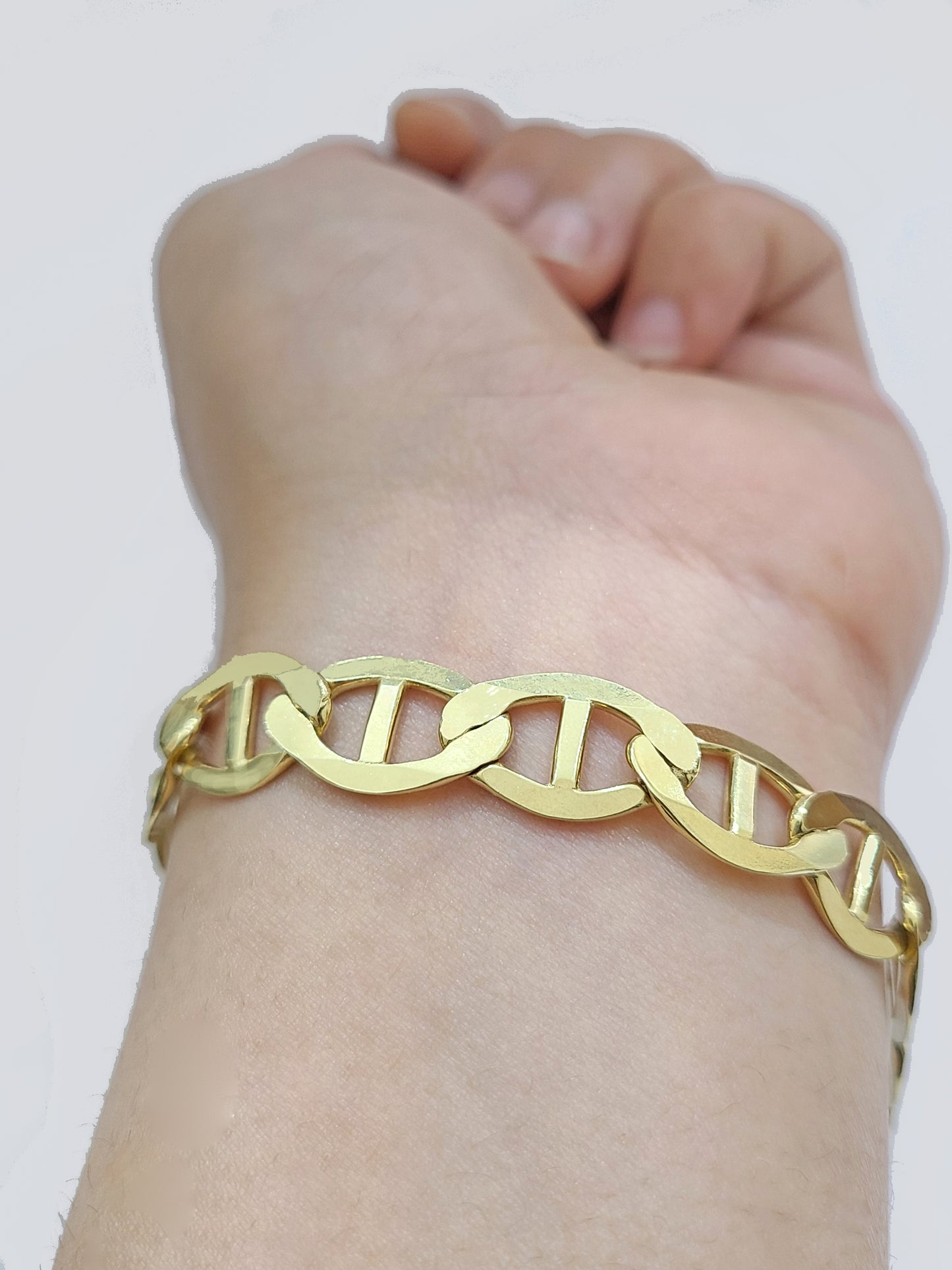 Real 10k Yellow Gold Anchor Mariner Link Bracelet 9 inch 12mm Lobster Lock