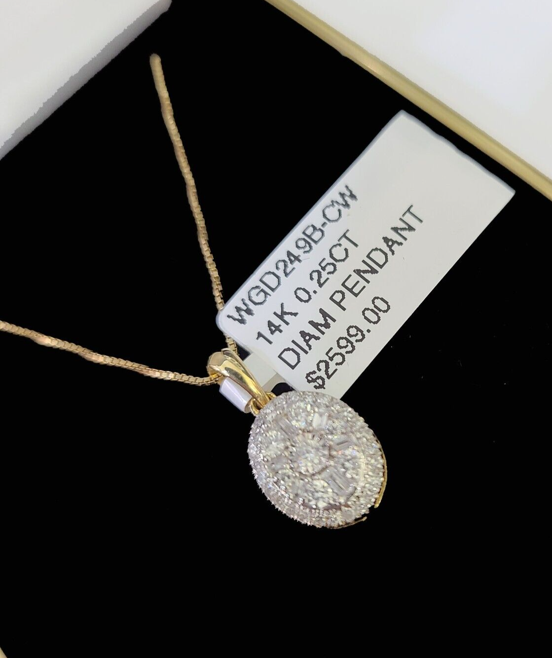 Is Presenting You with This Absolutely Stunning Real 14k Yellow Gold Chain With Beautiful Diamond Oval Pendant . These Beautiful chains will not tarnish, discolor, or fade because they are Pure 14K Gold. We also have them in various another length.