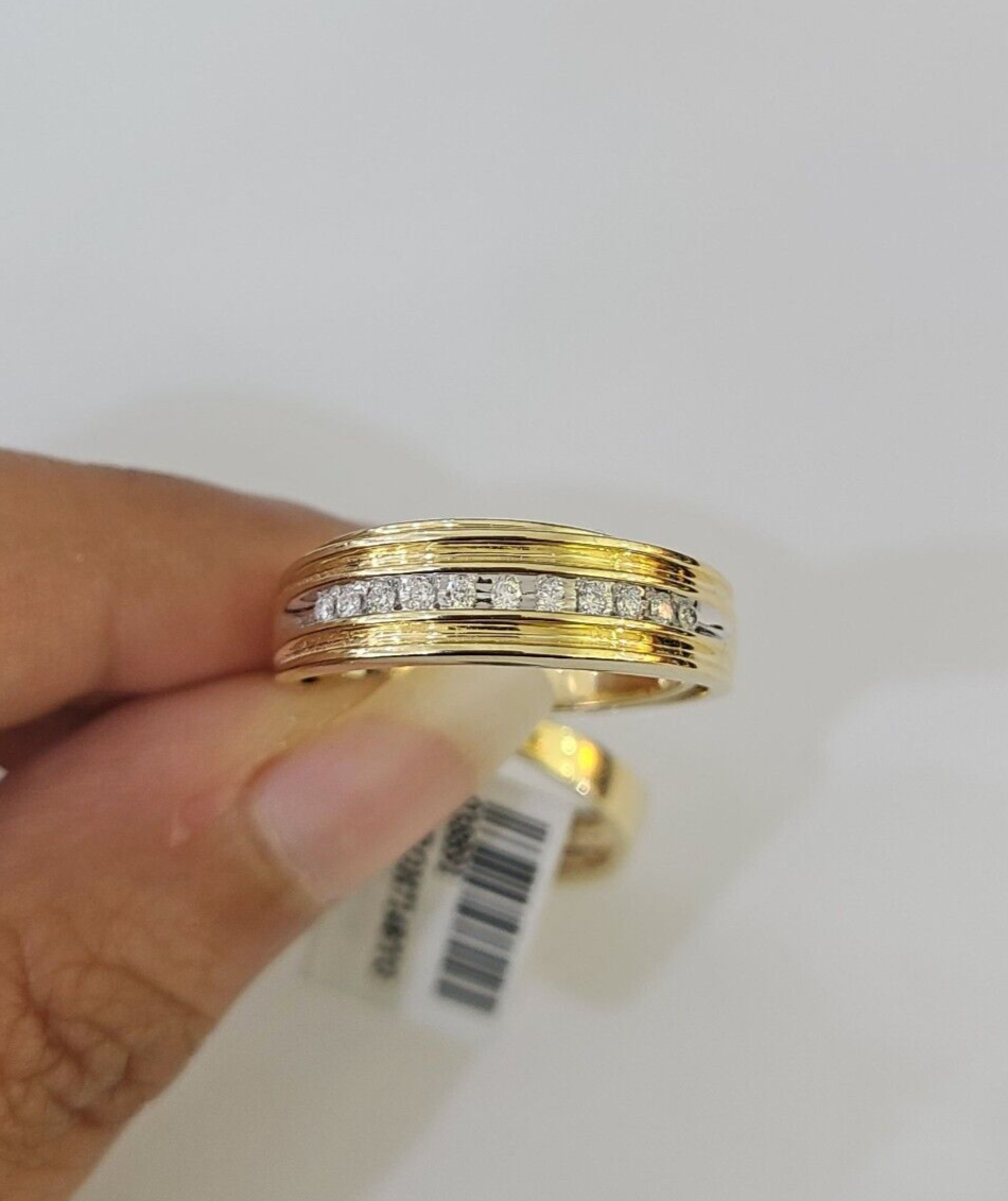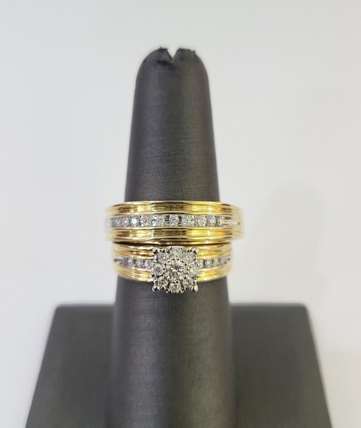 Real 14k Yellow Gold Diamond Ring Duo Set