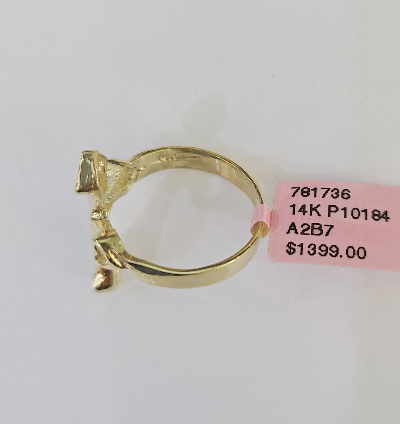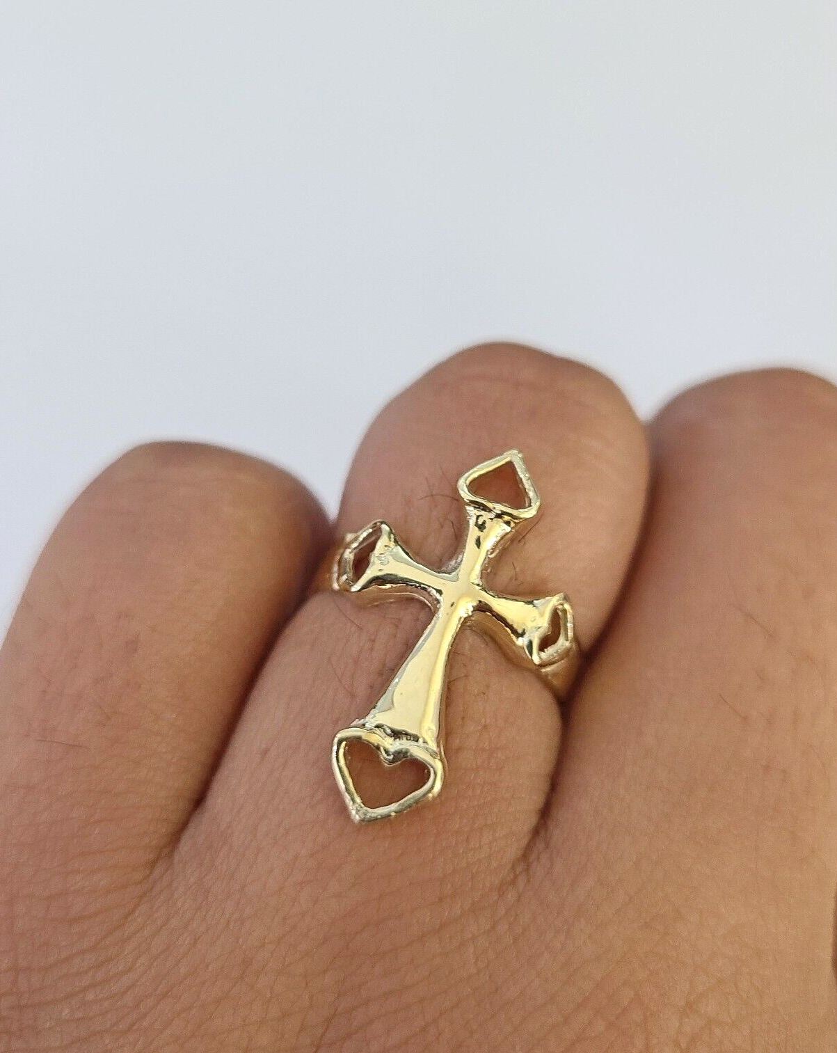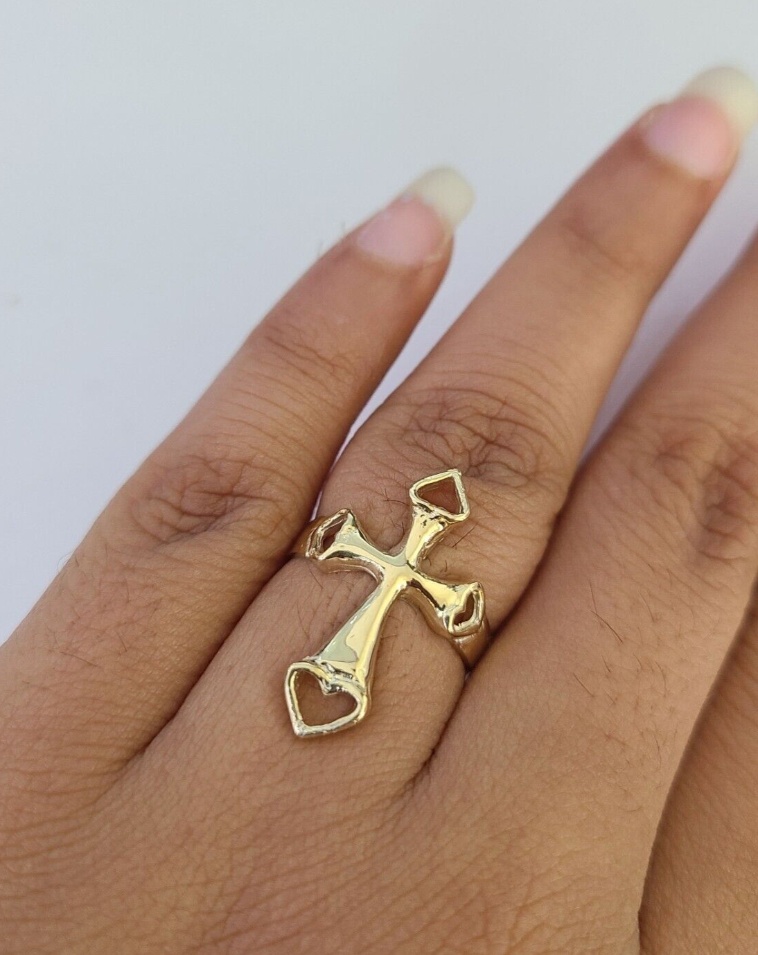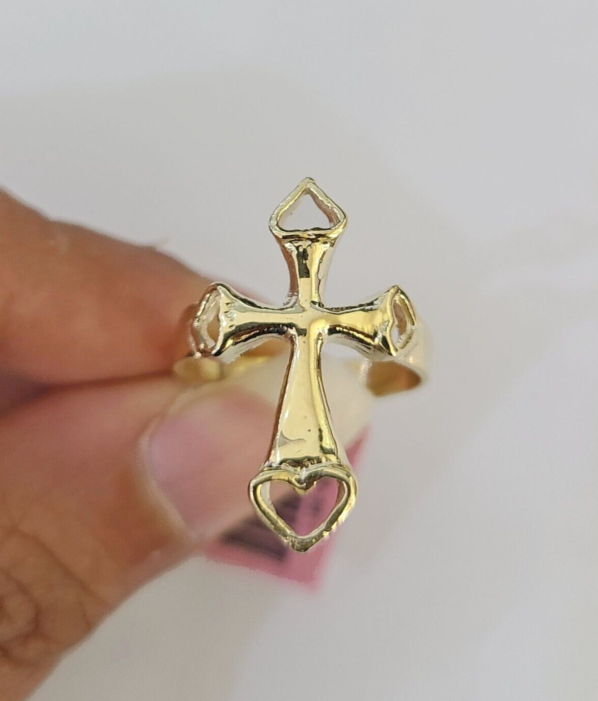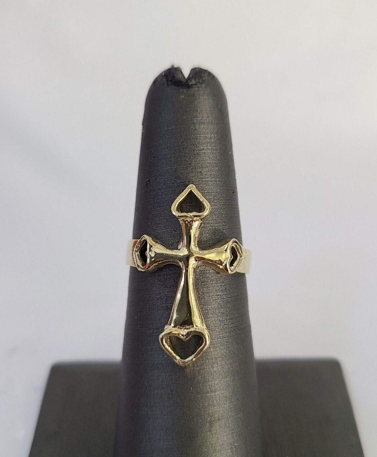 We present You with This Absolutely Stunning Real 14k Yellow Gold Jesus Cross Hearts Ring. It has a detailed cut with a very good finish. This Beautiful Ring will not tarnish, discolor, or fade because it is Pure 10K Gold. Please feel free to contact us if you have any queries regarding the item.
