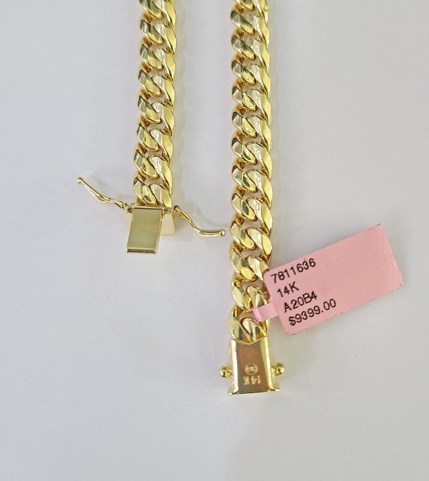 Presenting You With This Genuine 100% 14K pure yellow gold For Casual Wear Miami Cuban chain, 24 Inches long. These Necklace's links are very strong and have a safety lock on a sides. These Beautiful Bracelet will not tarnish, discolor, or fade because they are Pure 14K Gold.A20B4