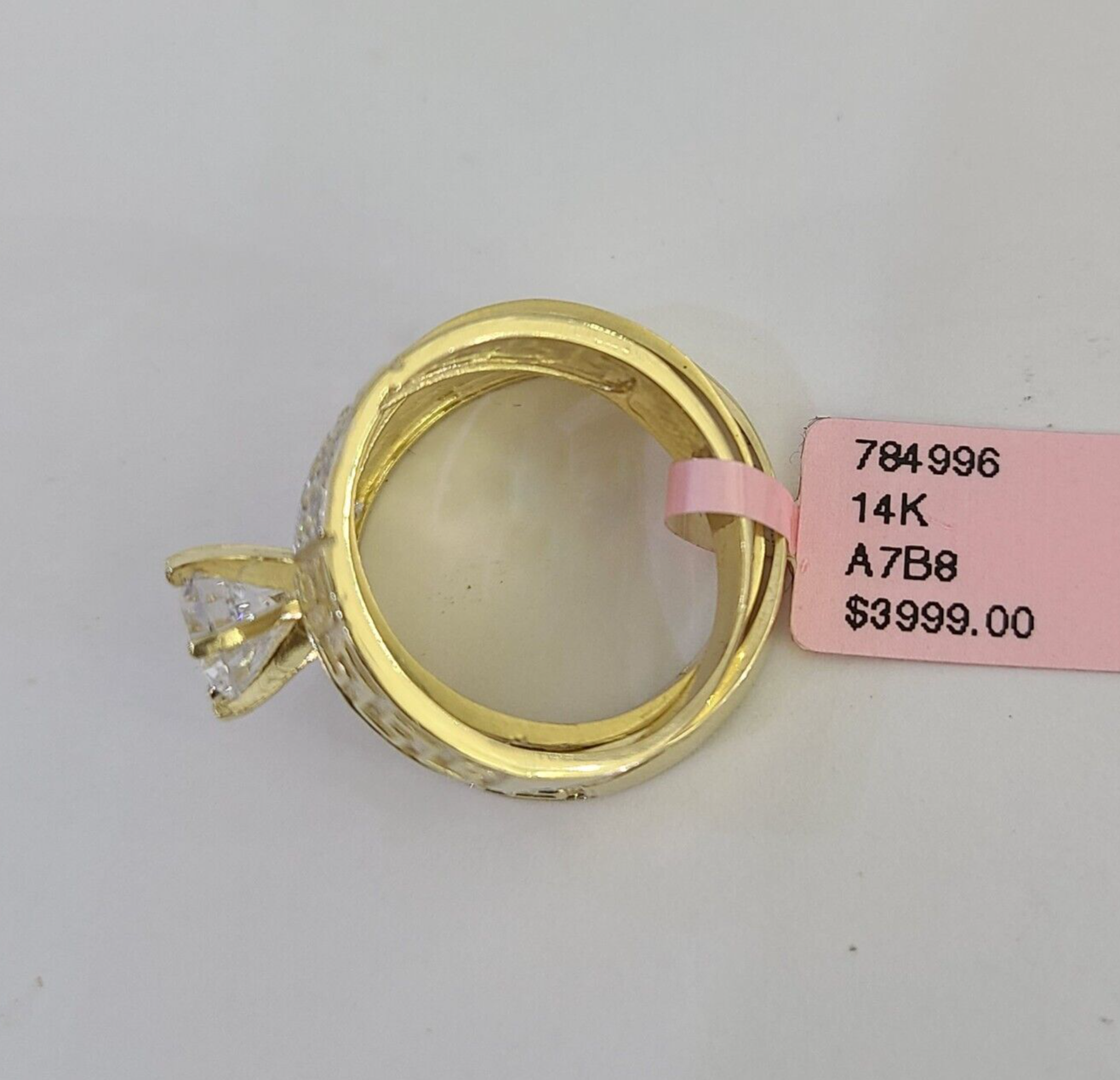 We present You with This Absolutely Stunning 14K Yellow Gold Trio Ladies Mens Ring. It has a detailed cut with a very good finish. This Beautiful Ring will not tarnish, discolor, or fade because it is Pure 14K Gold. Please feel free to contact us if you have any queries regarding the item. A7B8
